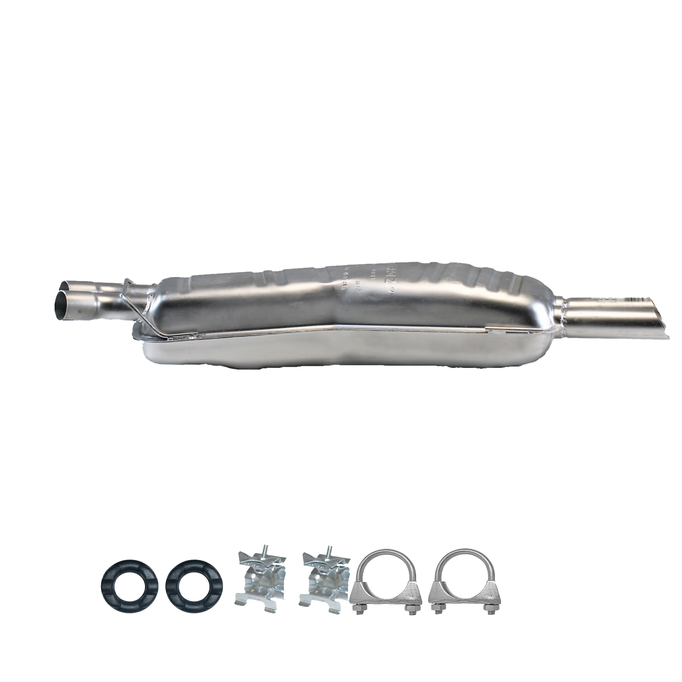 * Tłumiki posiadają system wygłuszający na bazie włókna szklanego dzięki temu nie zmienia się głośność układu wydechowego. * Produkt nie wymaga spawania !