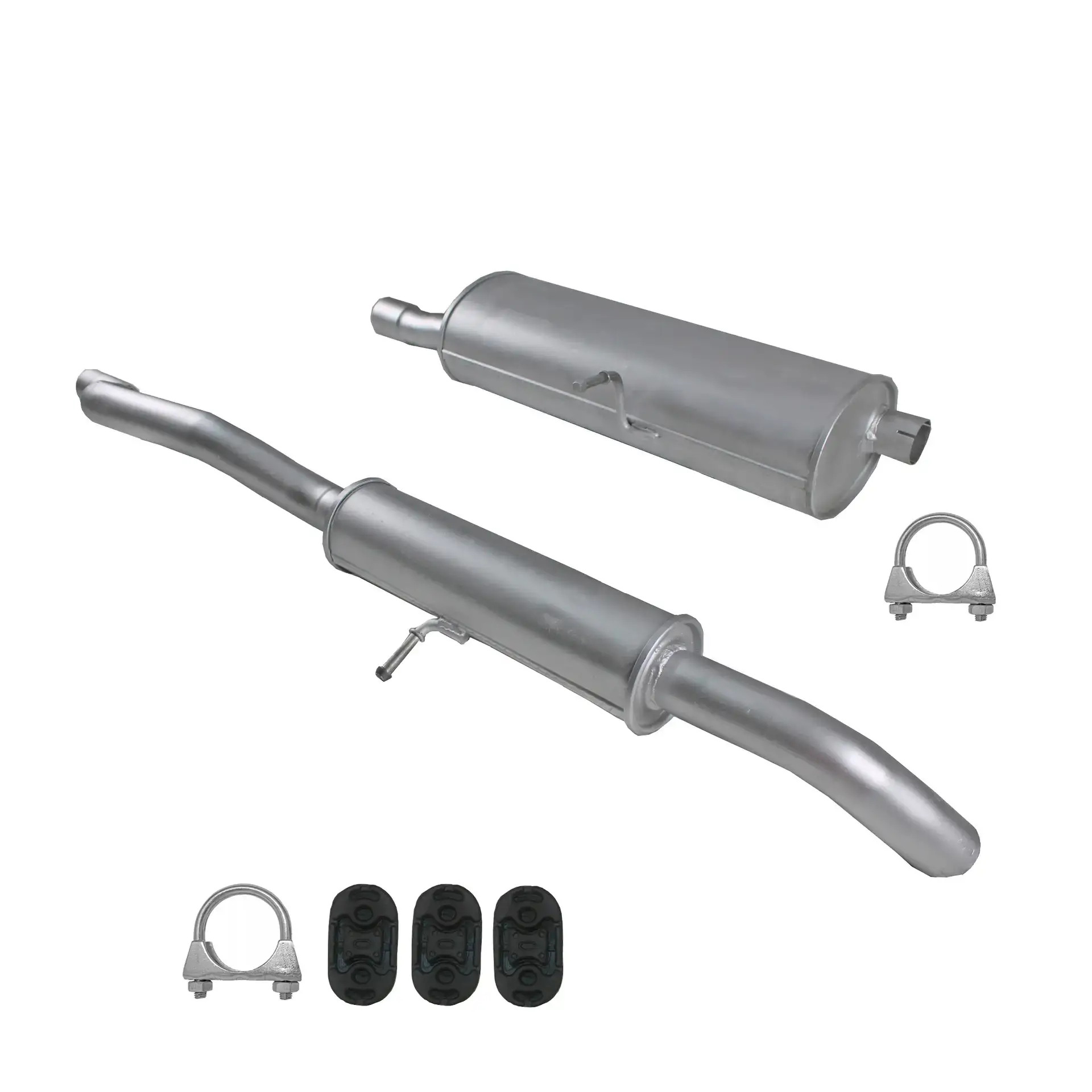 * Tłumiki posiadają system wygłuszający na bazie włókna szklanego dzięki temu nie zmienia się głośność układu wydechowego. * Produkt nie wymaga spawania !
