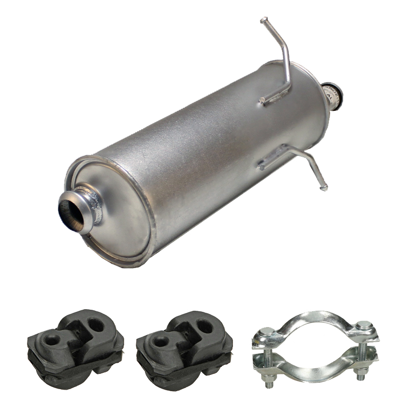 * Tłumiki posiadają system wygłuszający na bazie włókna szklanego dzięki temu nie zmienia się głośność układu wydechowego. * Produkt nie wymaga spawania !
