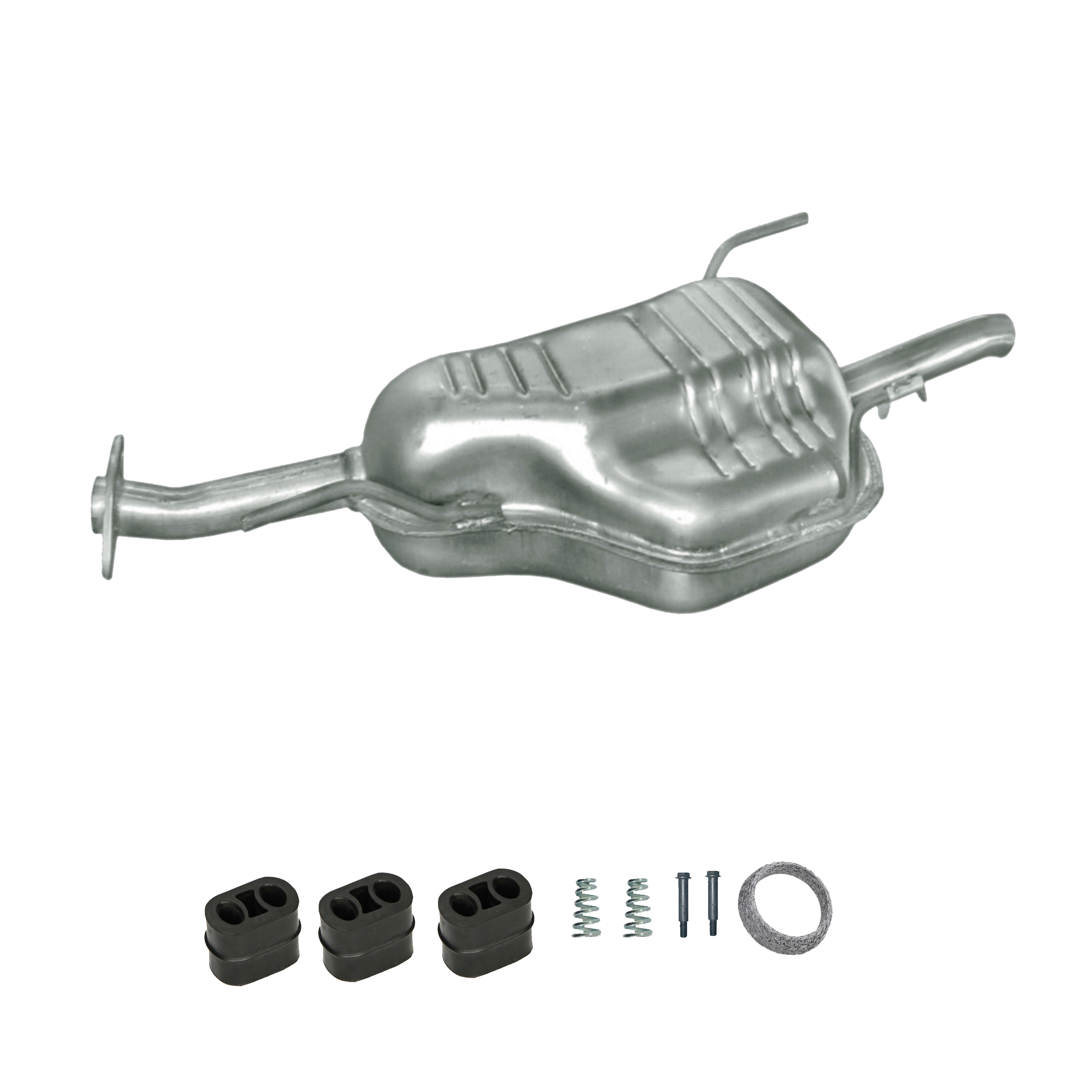 * Tłumiki posiadają system wygłuszający na bazie włókna szklanego dzięki temu nie zmienia się głośność układu wydechowego. * Produkt nie wymaga spawania !