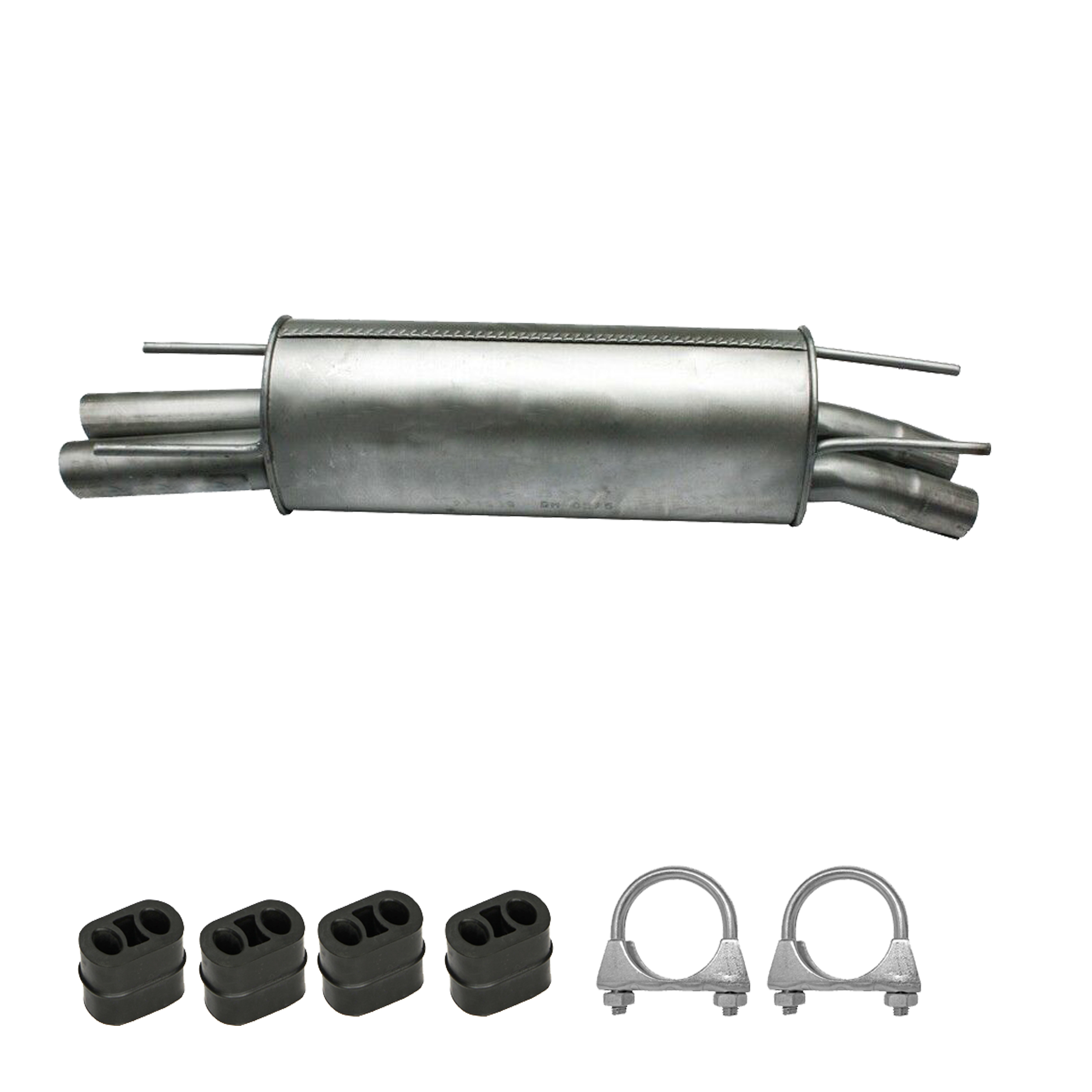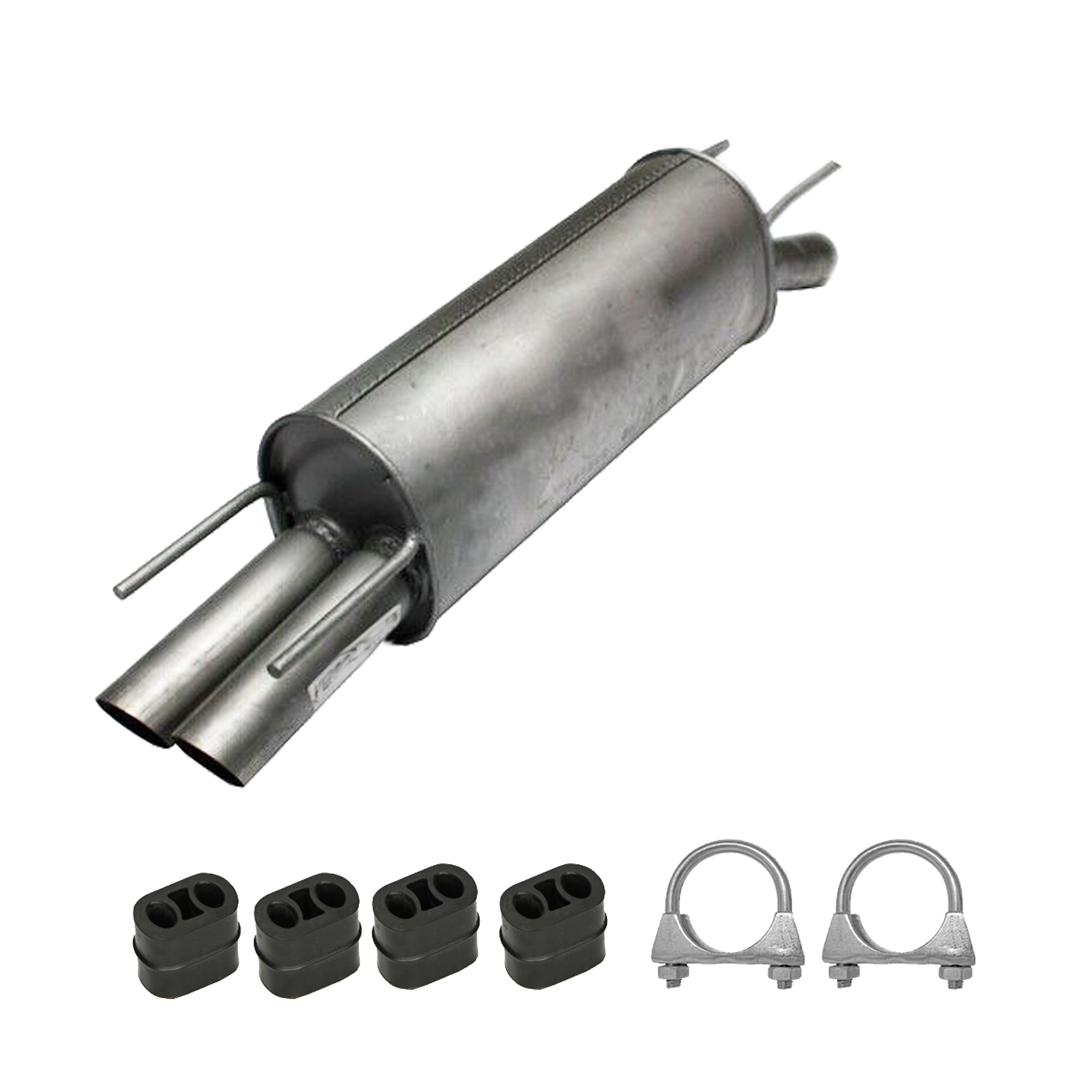 * Tłumiki posiadają system wygłuszający na bazie włókna szklanego dzięki temu nie zmienia się głośność układu wydechowego. * Produkt nie wymaga spawania !