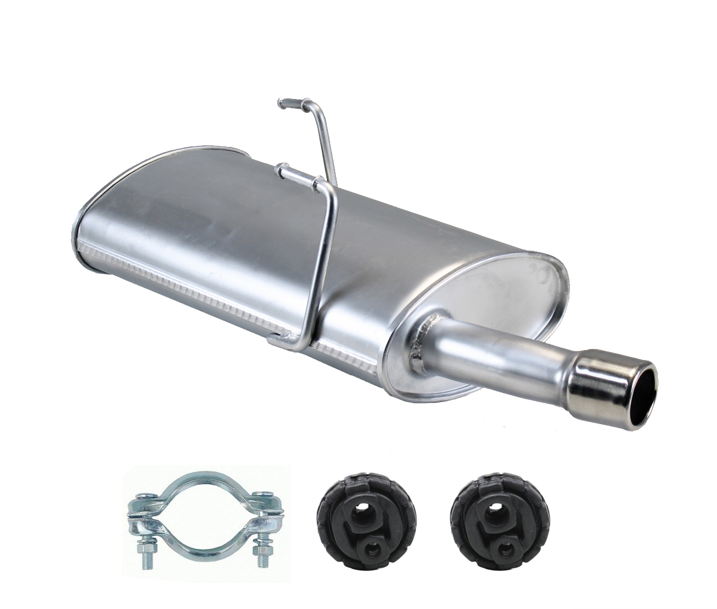 * Tłumiki posiadają system wygłuszający na bazie włókna szklanego dzięki temu nie zmienia się głośność układu wydechowego. * Produkt nie wymaga spawania !