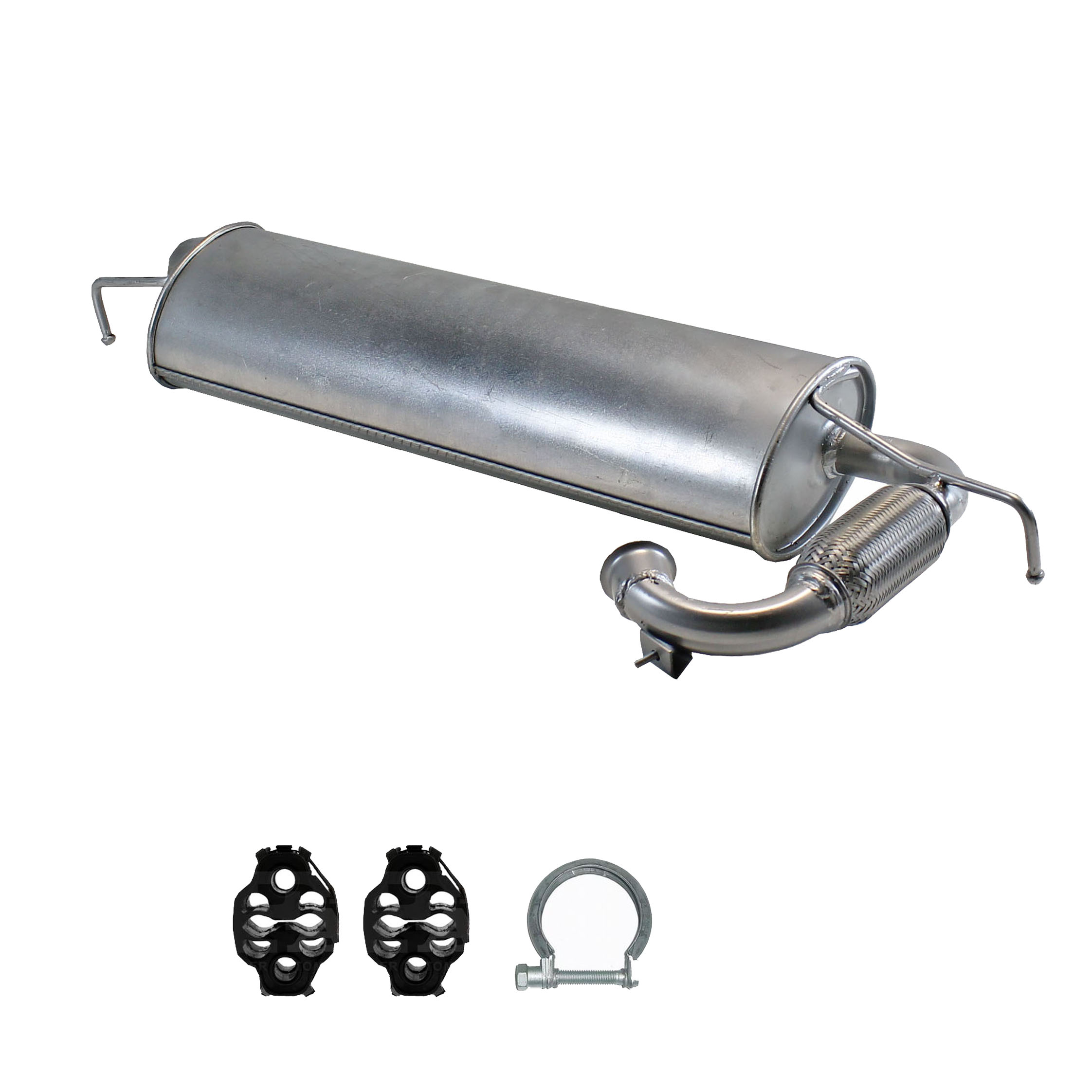 * Tłumiki posiadają system wygłuszający na bazie włókna szklanego dzięki temu nie zmienia się głośność układu wydechowego. * Produkt nie wymaga spawania !