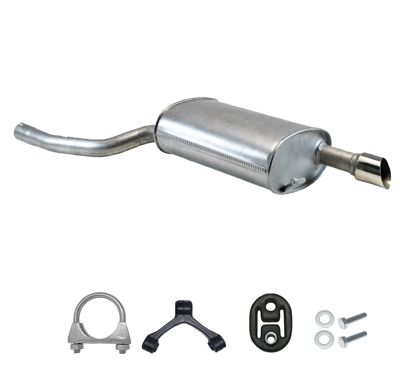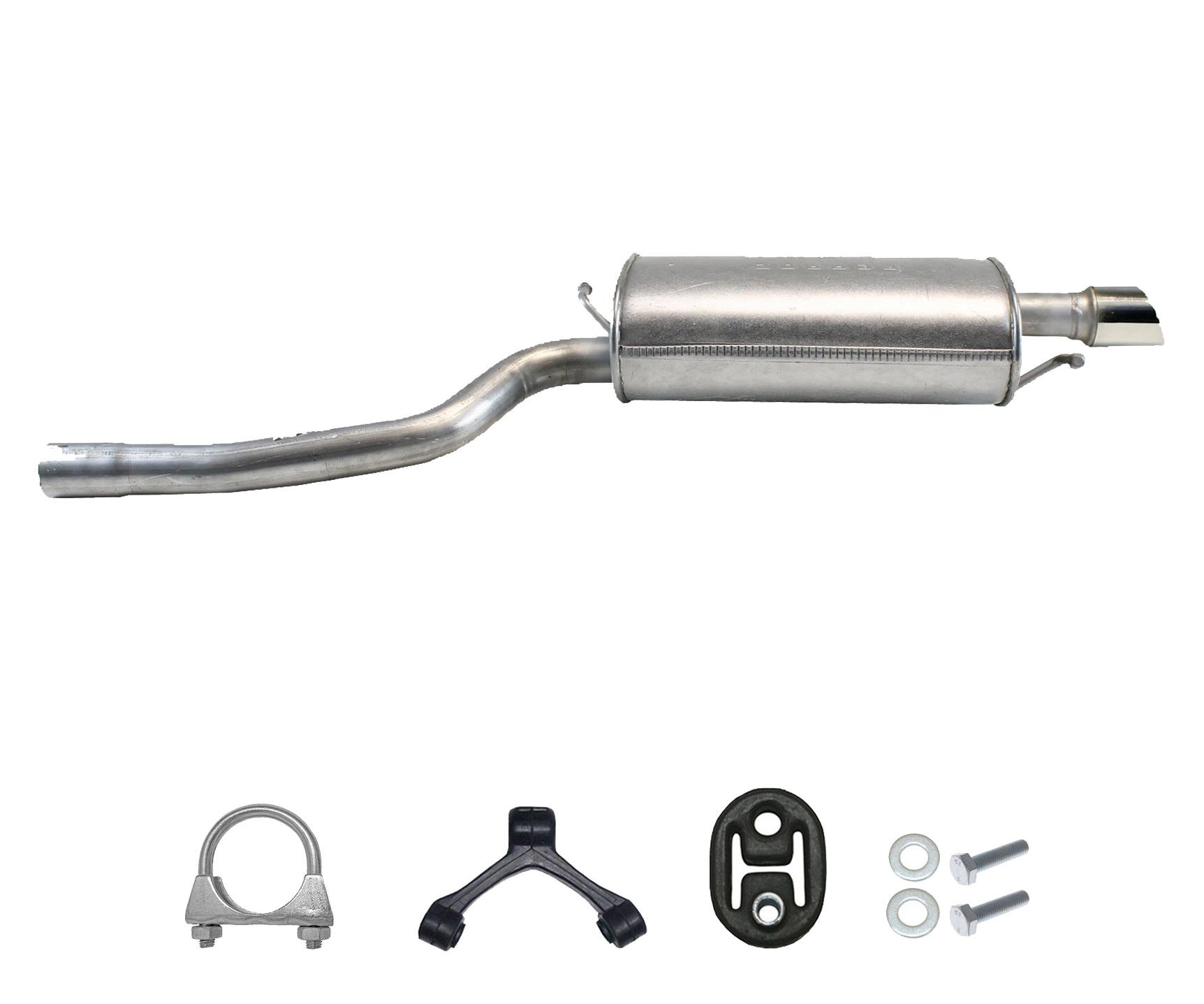 * Tłumiki posiadają system wygłuszający na bazie włókna szklanego dzięki temu nie zmienia się głośność układu wydechowego. * Produkt nie wymaga spawania !