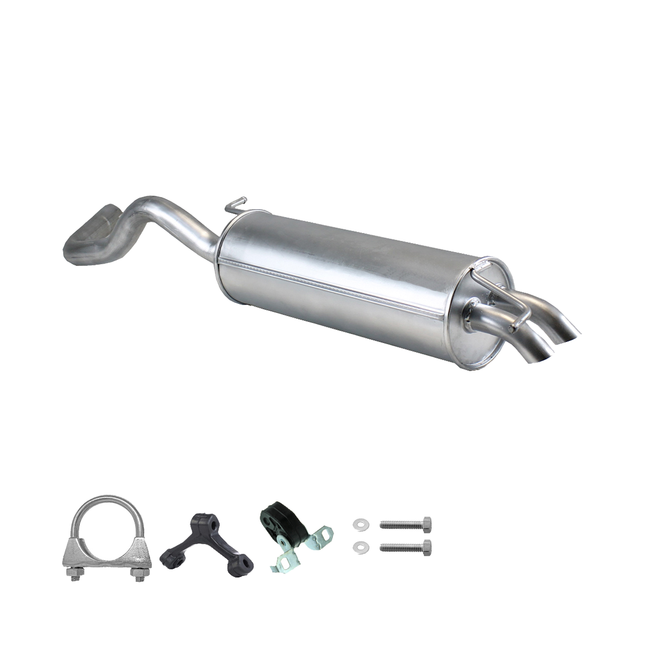 * Tłumiki posiadają system wygłuszający na bazie włókna szklanego dzięki temu nie zmienia się głośność układu wydechowego. * Produkt nie wymaga spawania !