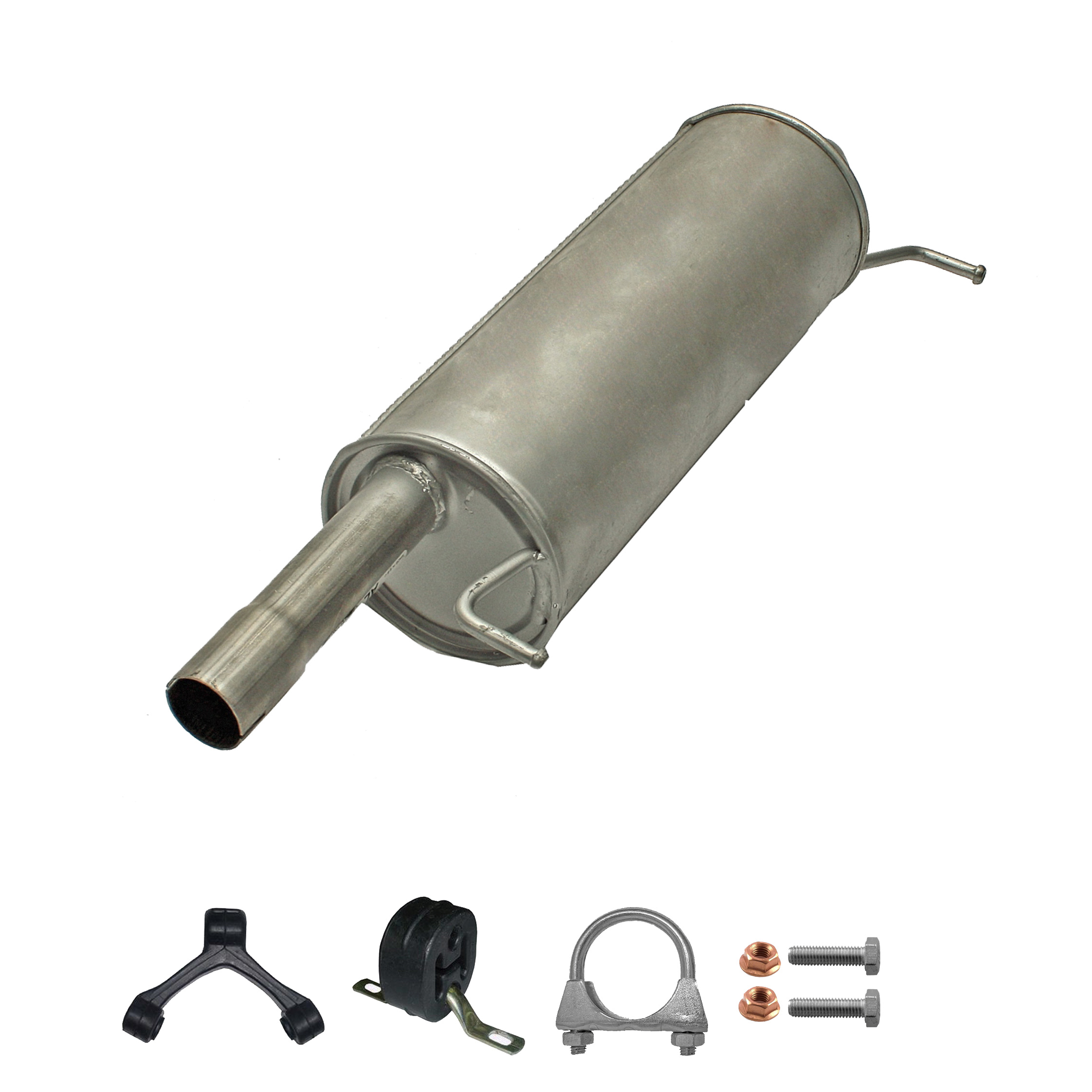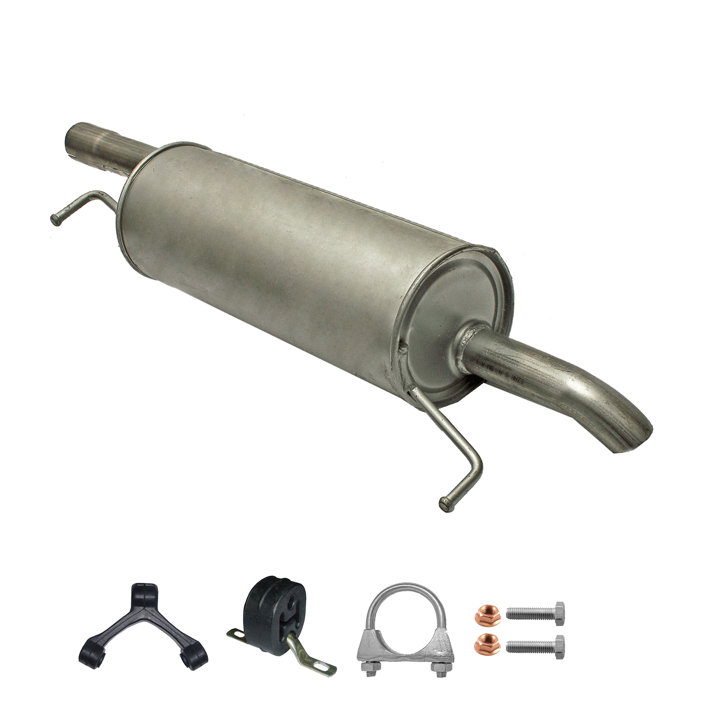 * Tłumiki posiadają system wygłuszający na bazie włókna szklanego dzięki temu nie zmienia się głośność układu wydechowego. * Produkt nie wymaga spawania !