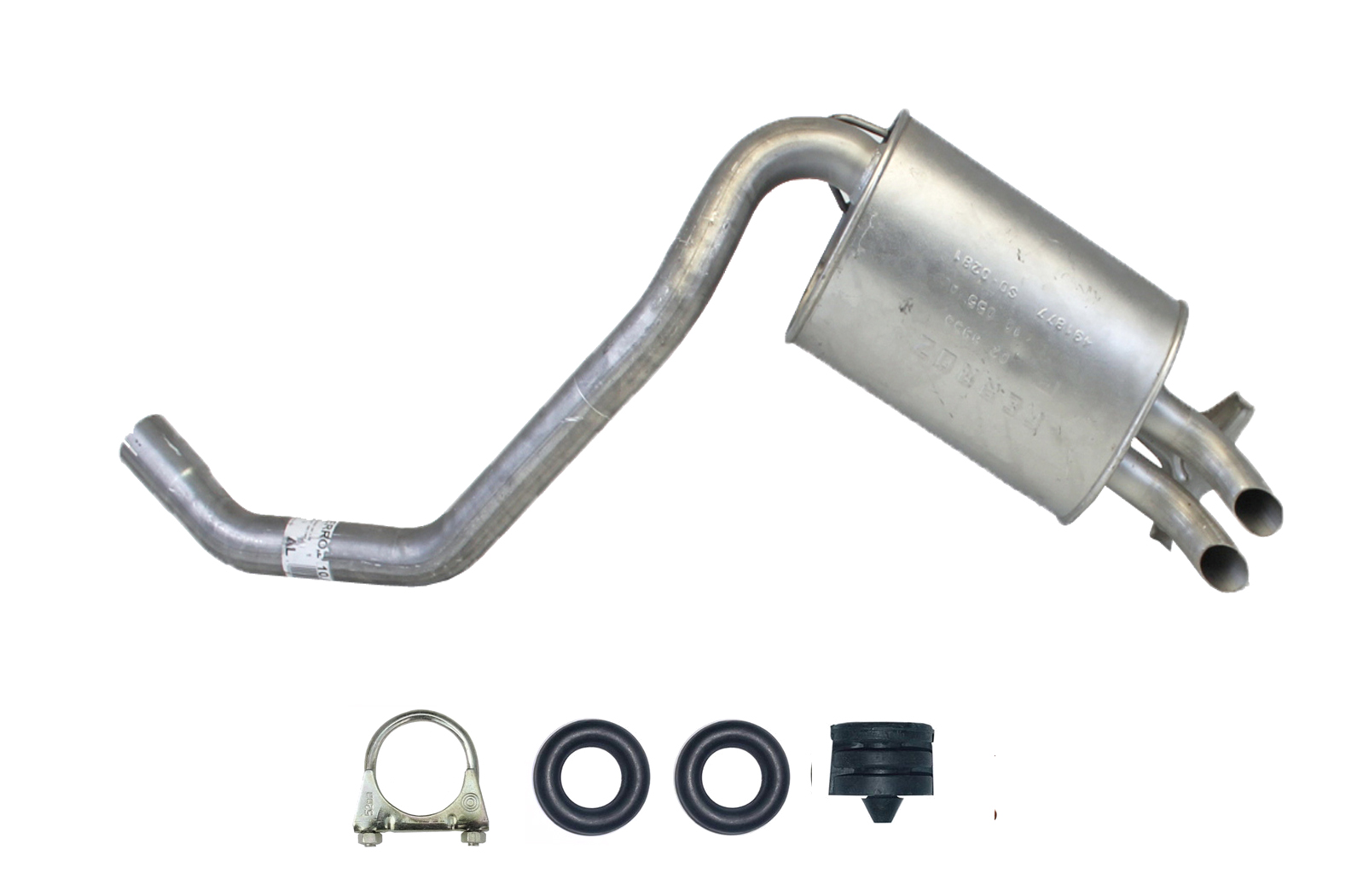 * Tłumiki posiadają system wygłuszający na bazie włókna szklanego dzięki temu nie zmienia się głośność układu wydechowego. * Produkt nie wymaga spawania !