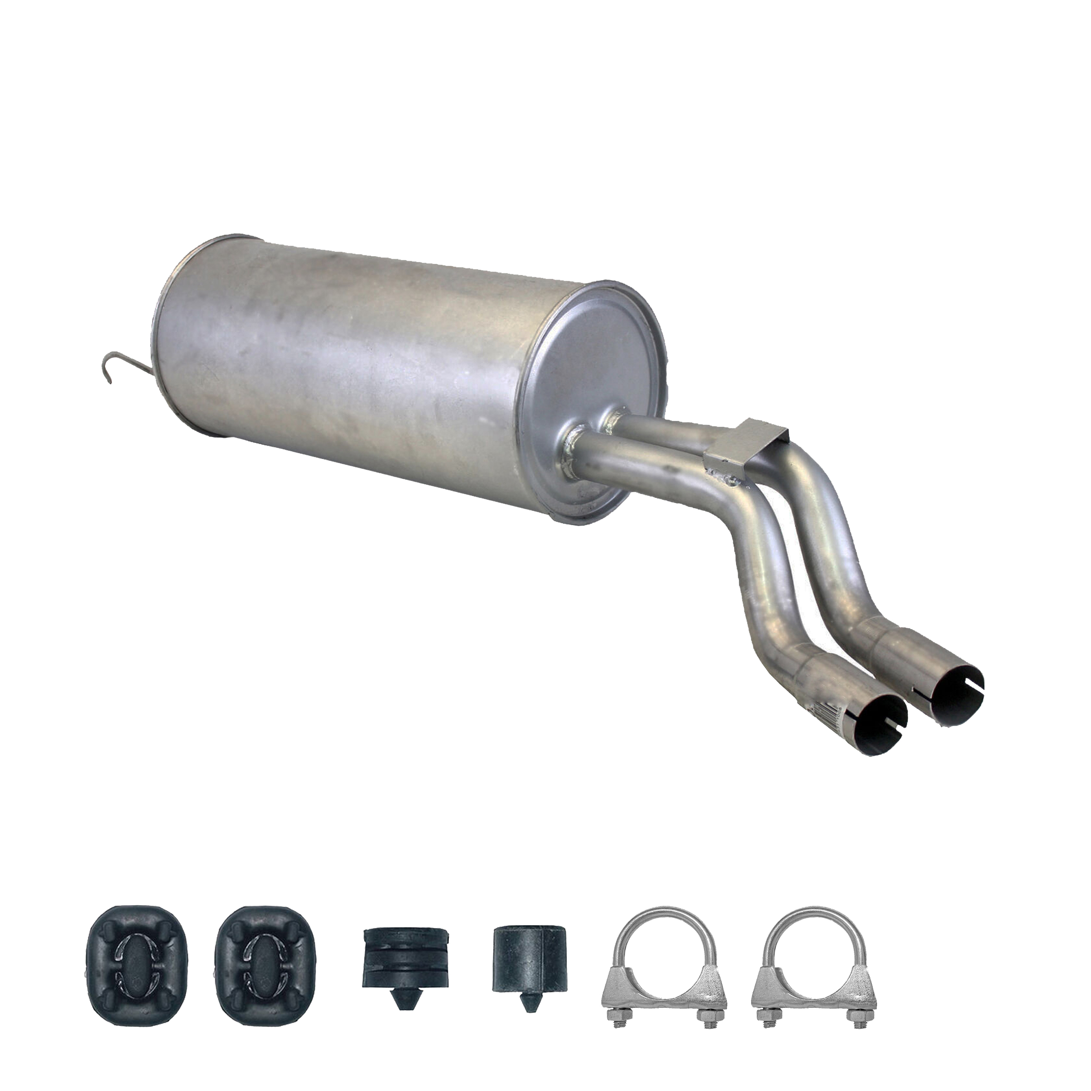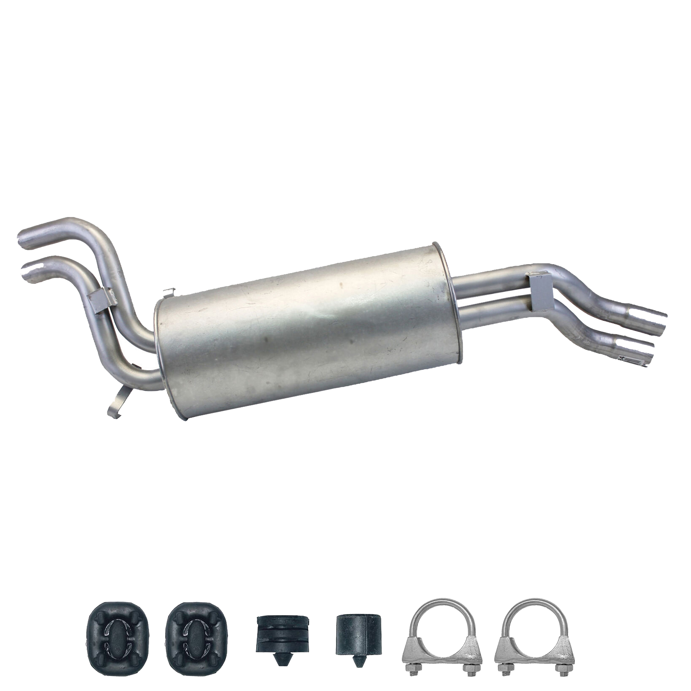 * Tłumiki posiadają system wygłuszający na bazie włókna szklanego dzięki temu nie zmienia się głośność układu wydechowego. * Produkt nie wymaga spawania !