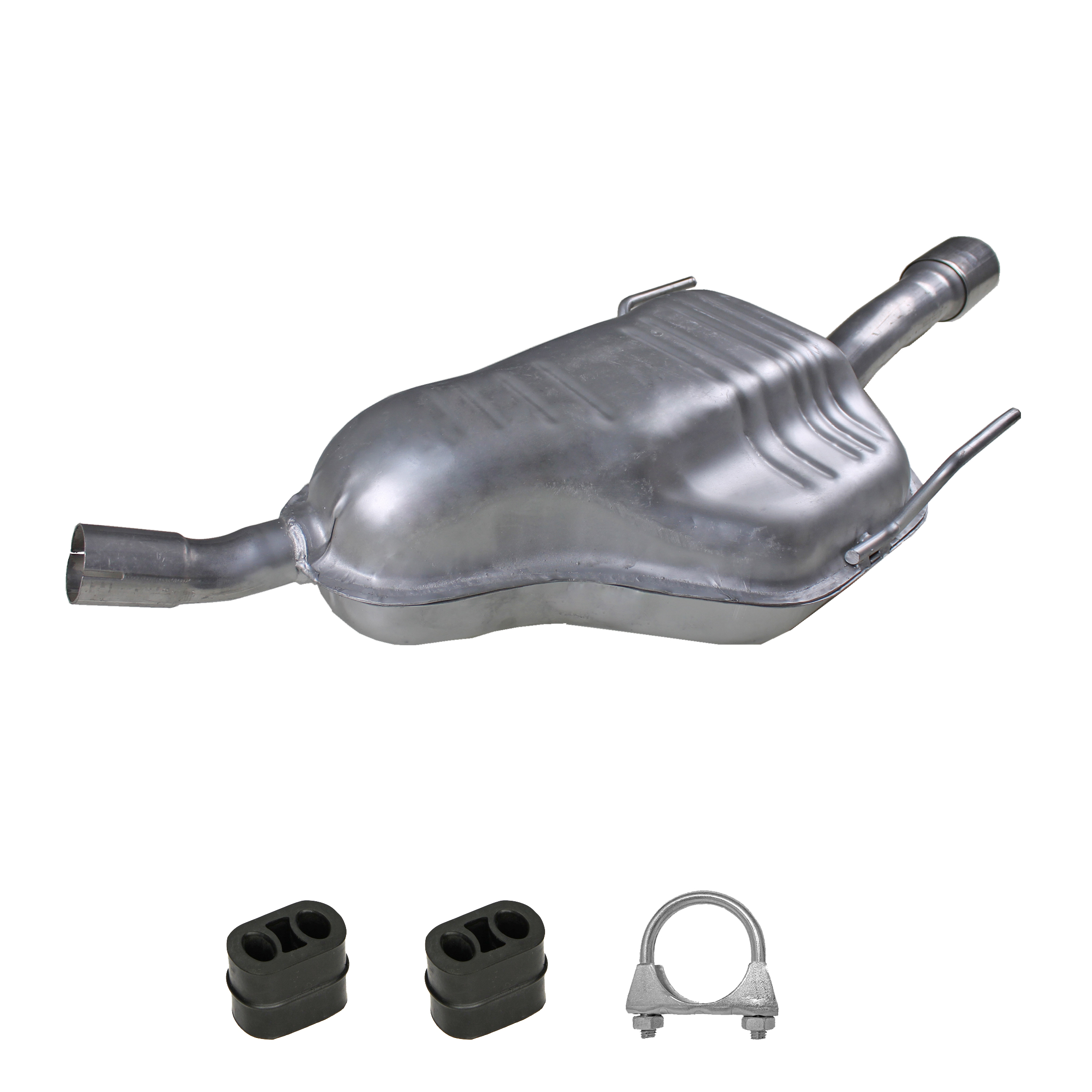 * Tłumiki posiadają system wygłuszający na bazie włókna szklanego dzięki temu nie zmienia się głośność układu wydechowego. * Produkt nie wymaga spawania !