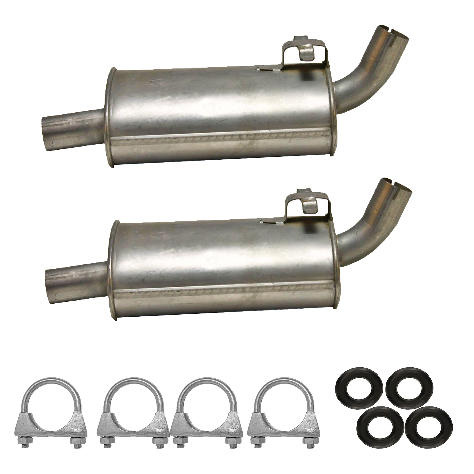 * Tłumiki posiadają system wygłuszający na bazie włókna szklanego dzięki temu nie zmienia się głośność układu wydechowego. * Produkt nie wymaga spawania !