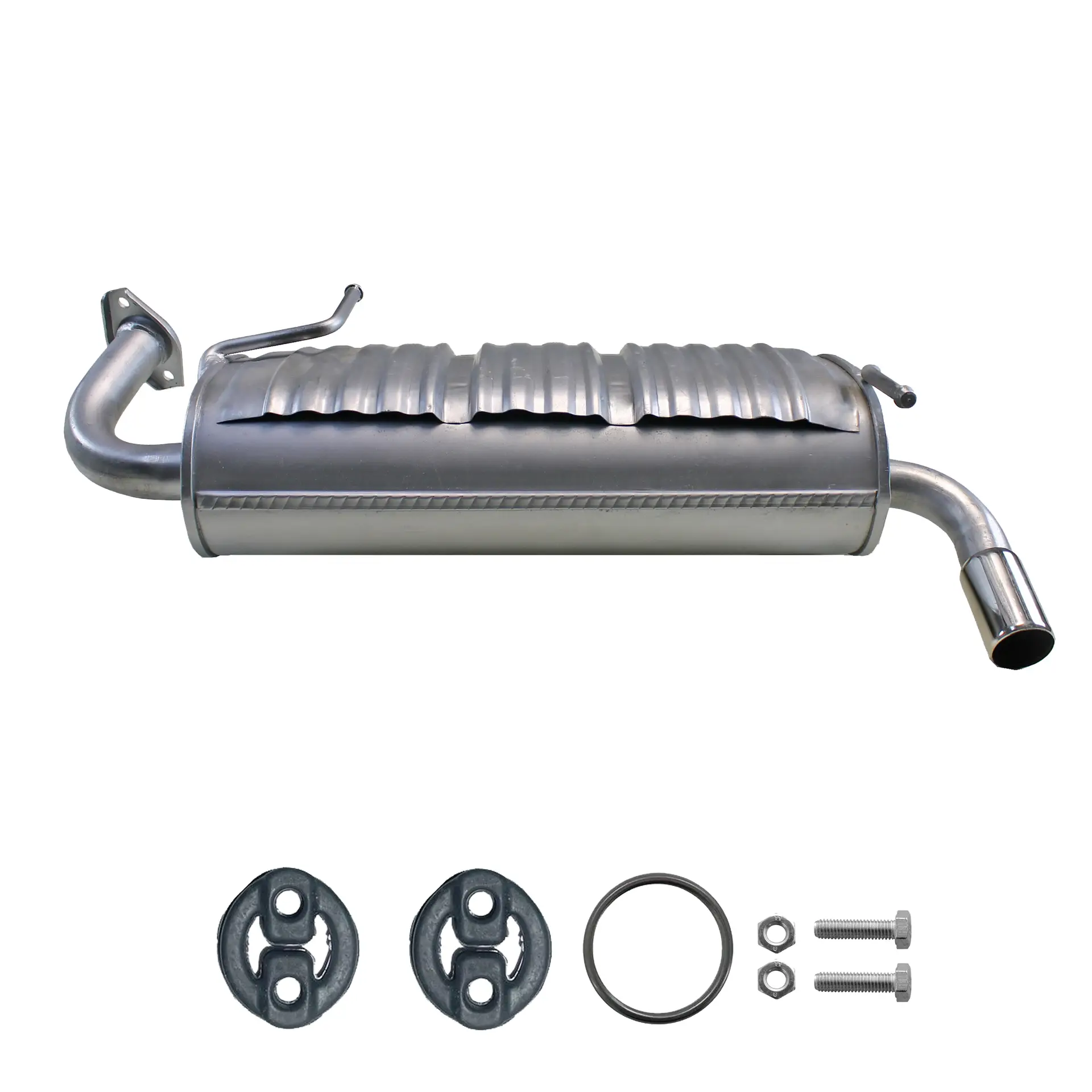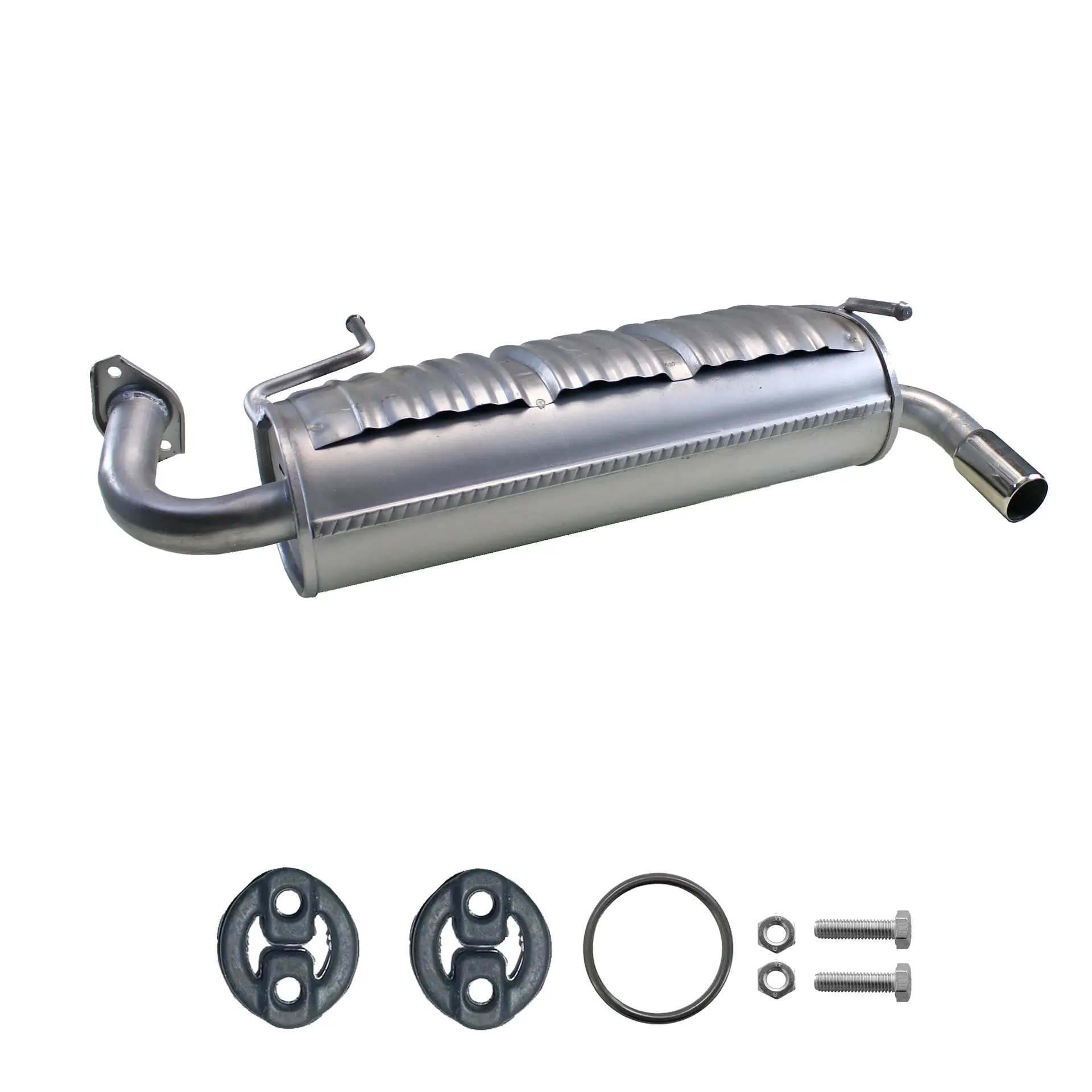 * Tłumiki posiadają system wygłuszający na bazie włókna szklanego dzięki temu nie zmienia się głośność układu wydechowego. * Produkt nie wymaga spawania !
