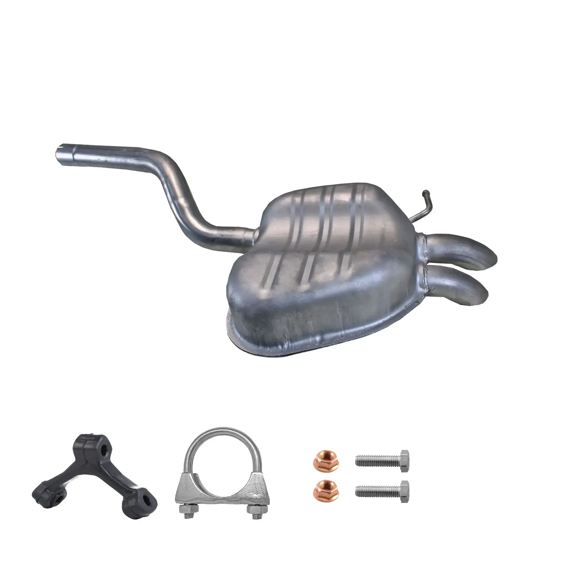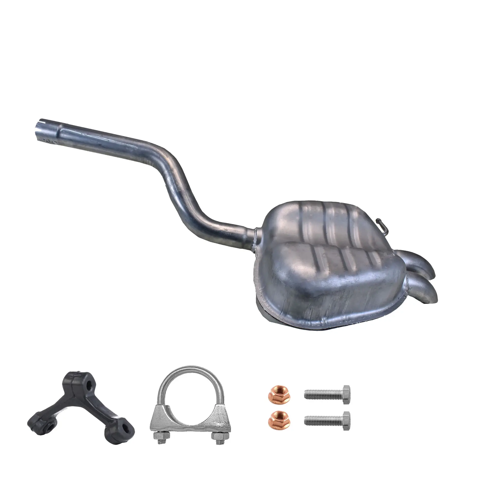 * Tłumiki posiadają system wygłuszający na bazie włókna szklanego dzięki temu nie zmienia się głośność układu wydechowego. * Produkt nie wymaga spawania !
