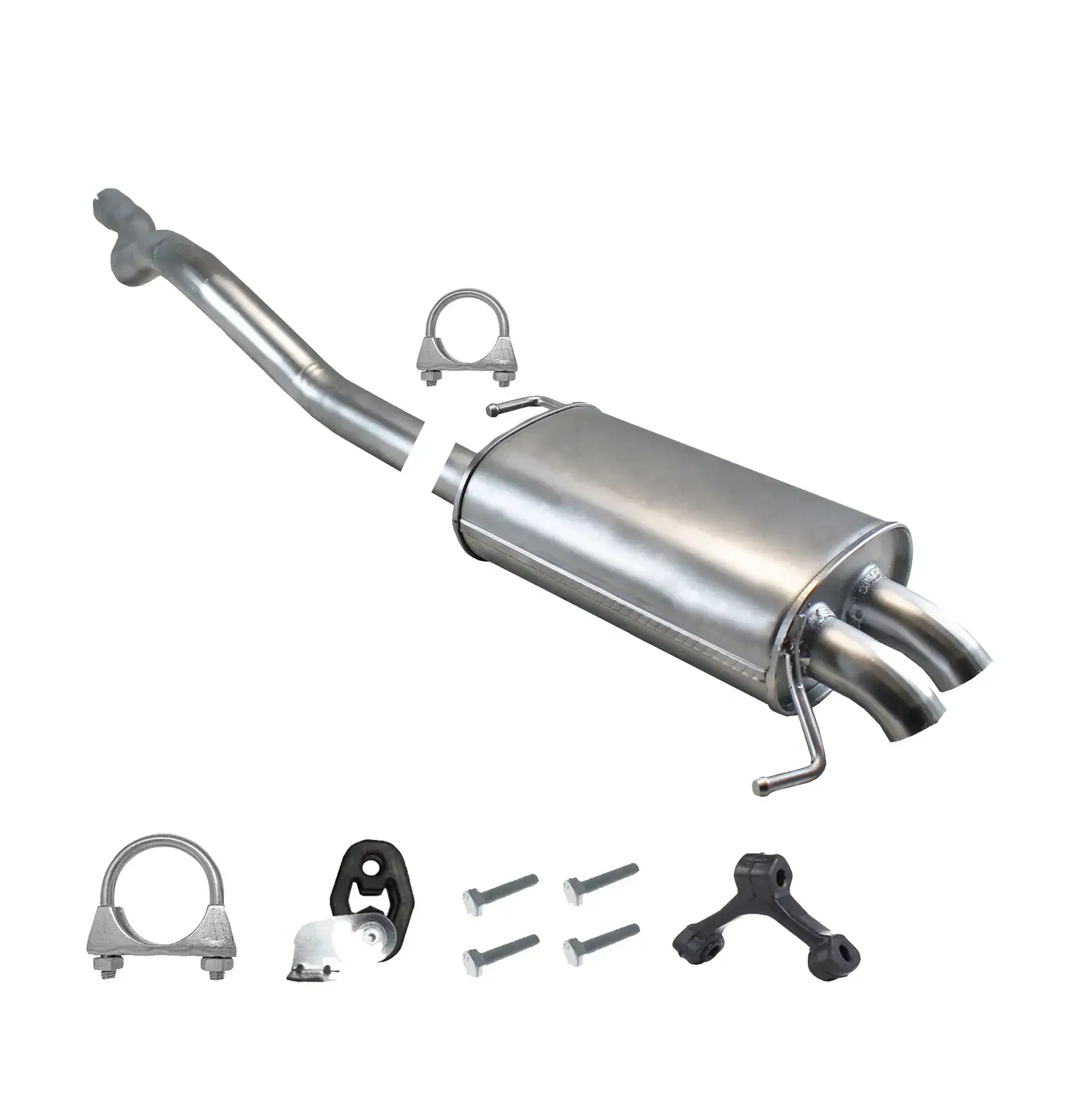 * Tłumiki posiadają system wygłuszający na bazie włókna szklanego dzięki temu nie zmienia się głośność układu wydechowego. * Produkt nie wymaga spawania !