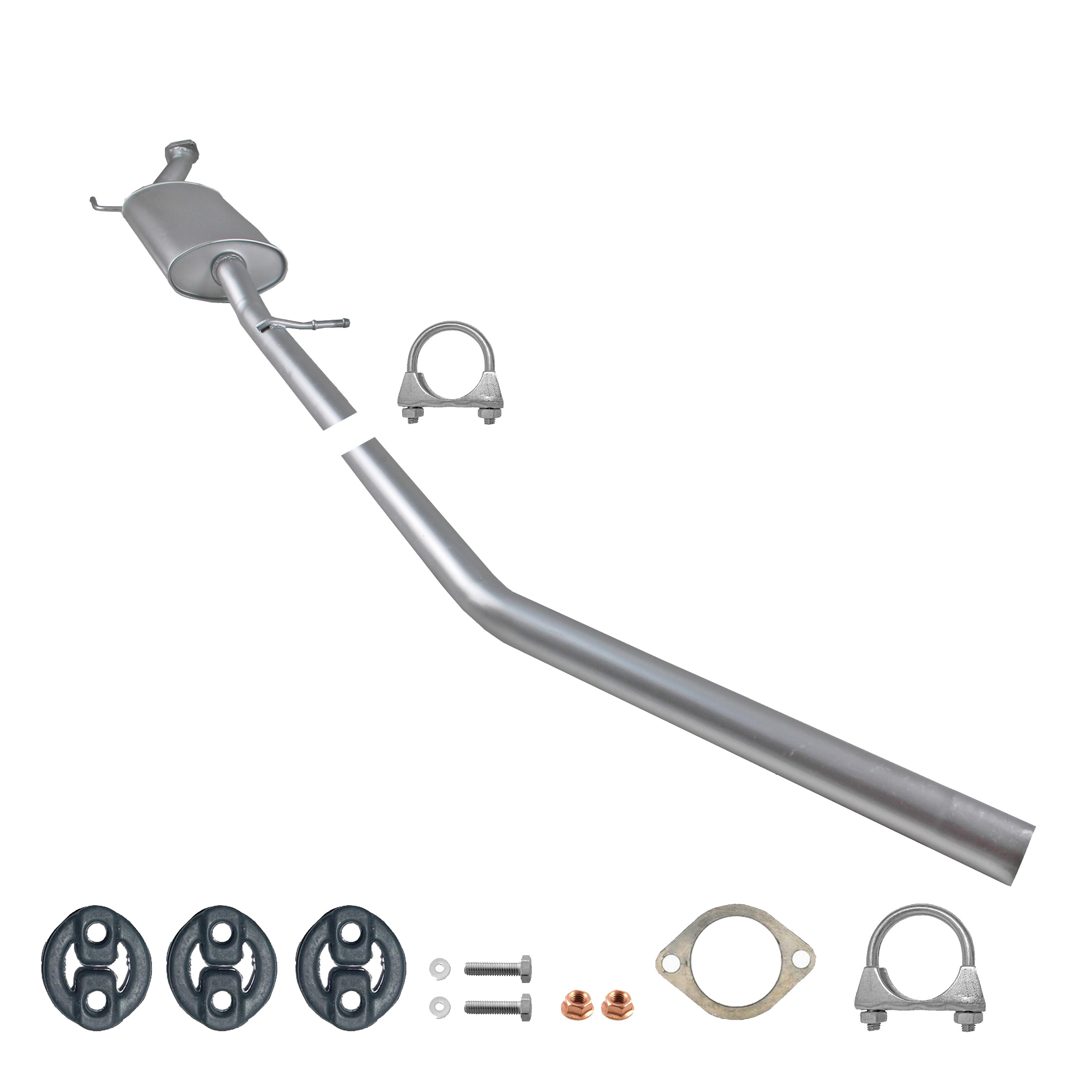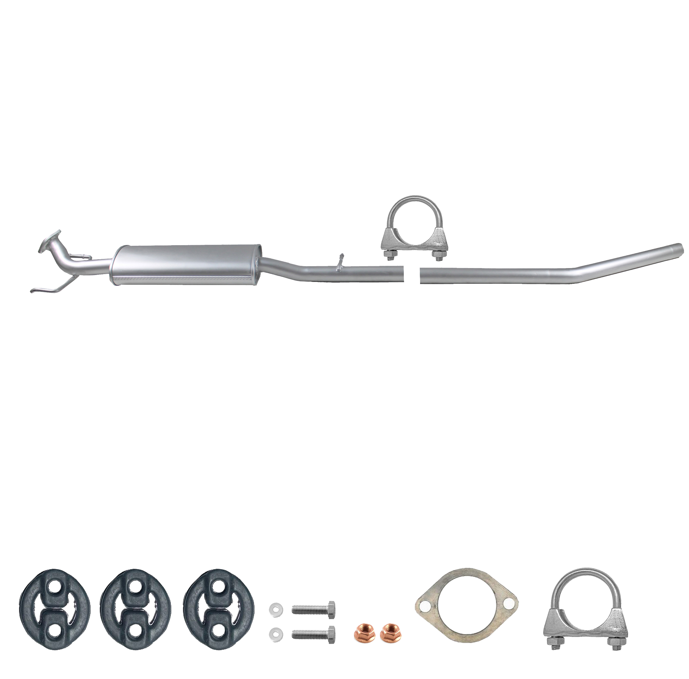 * Tłumiki posiadają system wygłuszający na bazie włókna szklanego dzięki temu nie zmienia się głośność układu wydechowego. * Produkt nie wymaga spawania !