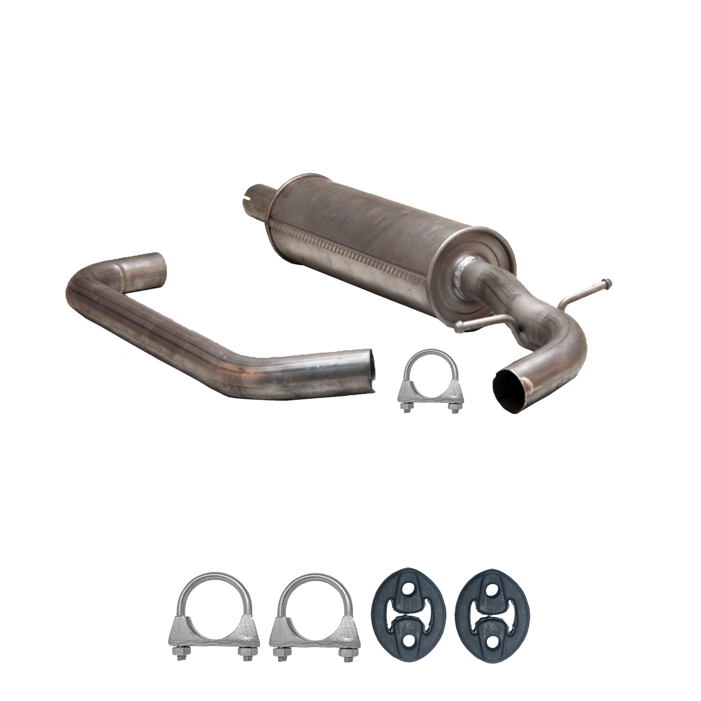 * Tłumiki posiadają system wygłuszający na bazie włókna szklanego dzięki temu nie zmienia się głośność układu wydechowego. * Produkt nie wymaga spawania !