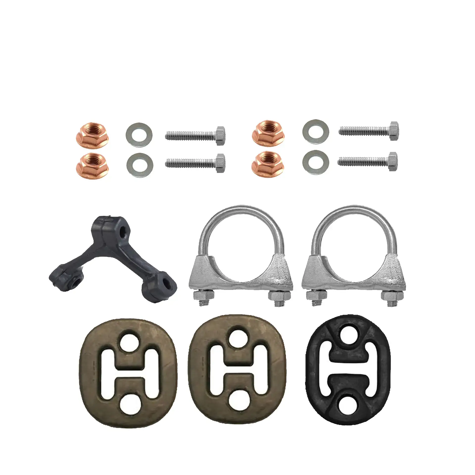 * Tłumiki posiadają system wygłuszający na bazie włókna szklanego dzięki temu nie zmienia się głośność układu wydechowego. * Produkt nie wymaga spawania !