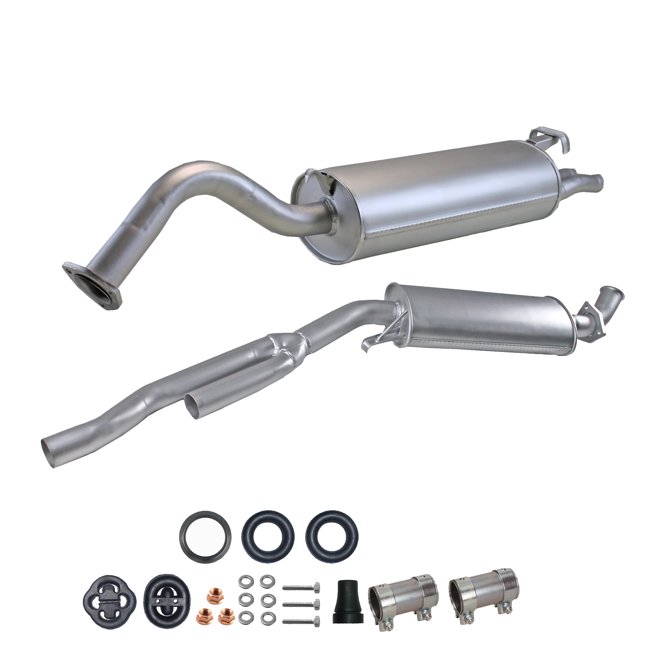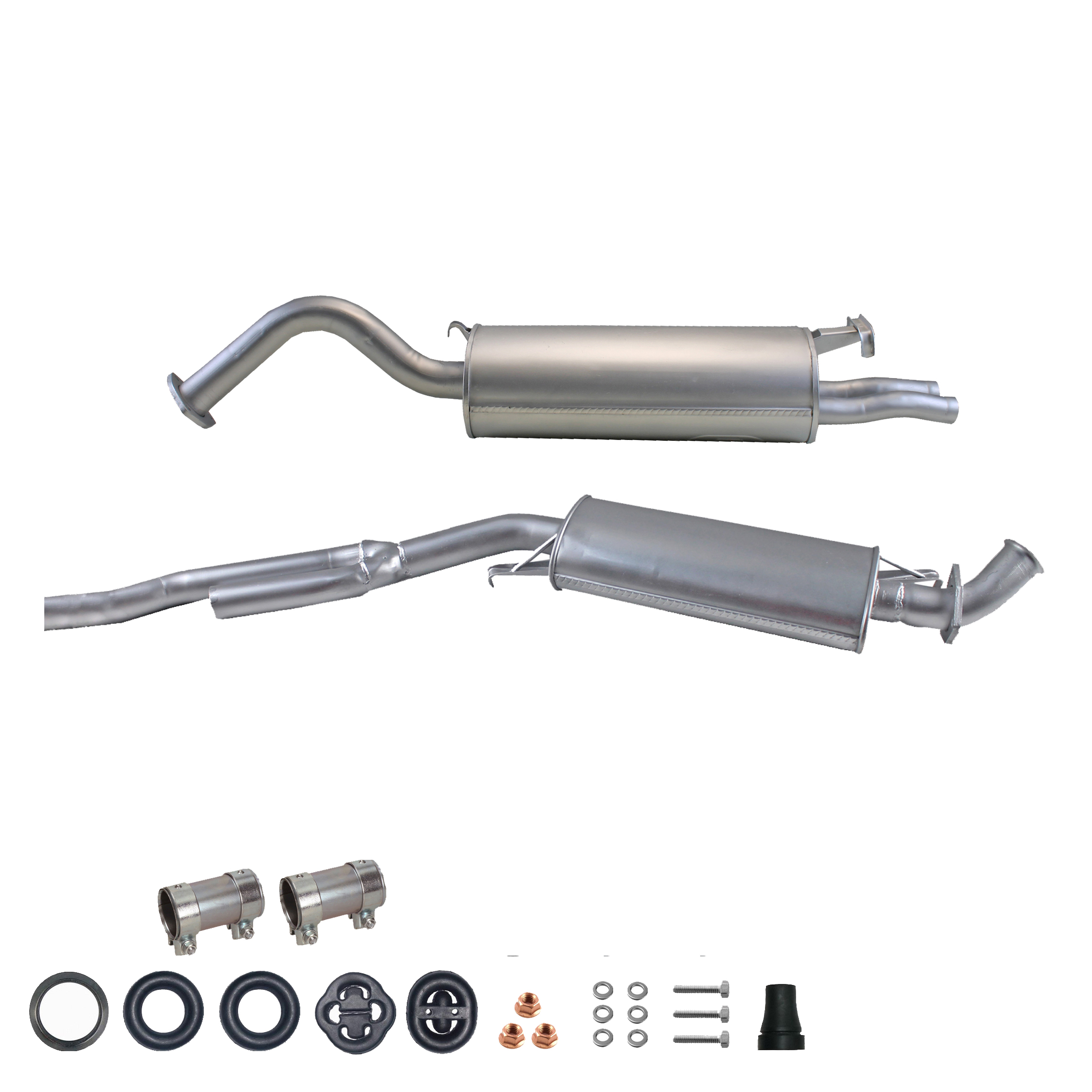 * Tłumiki posiadają system wygłuszający na bazie włókna szklanego dzięki temu nie zmienia się głośność układu wydechowego. * Produkt nie wymaga spawania !