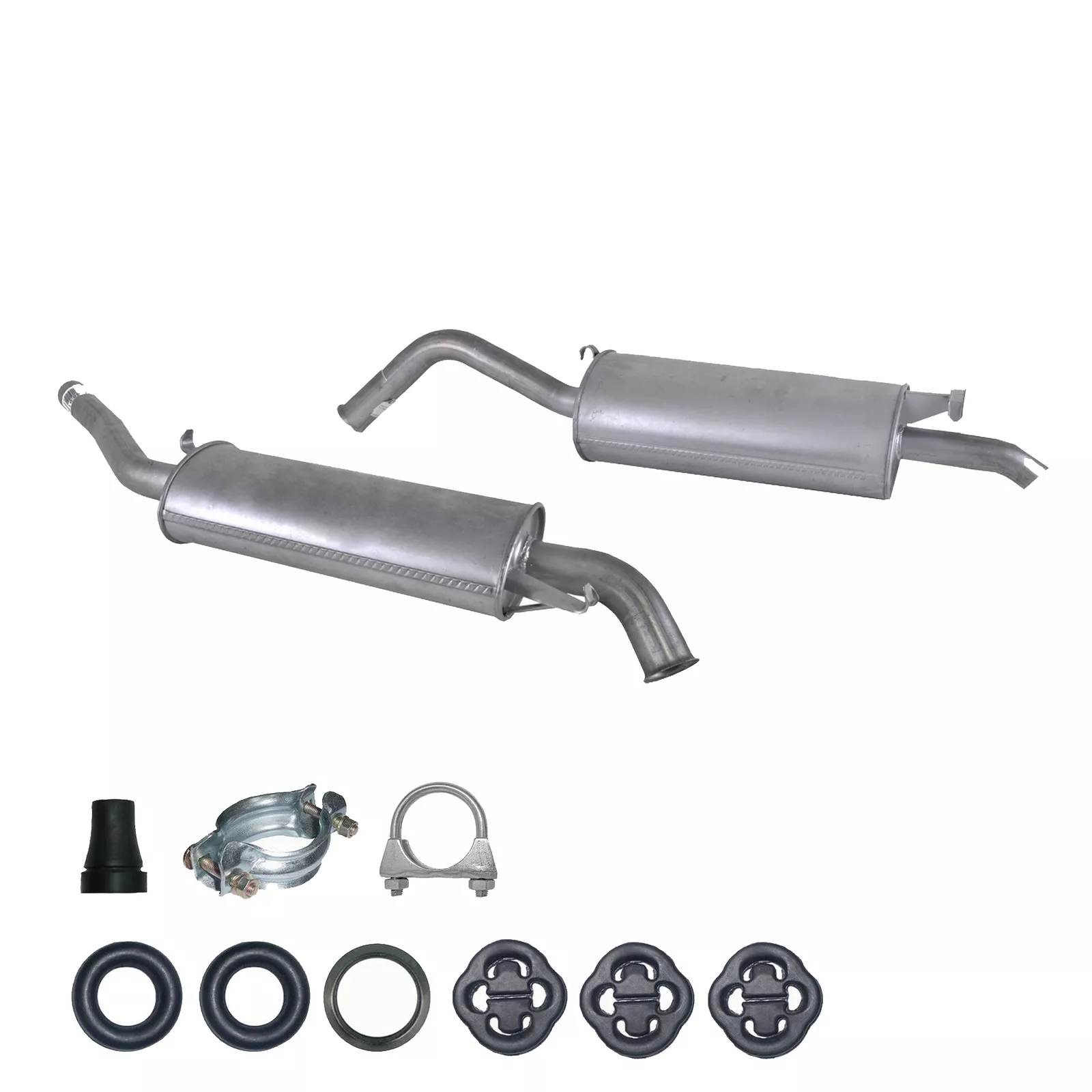 * Tłumiki posiadają system wygłuszający na bazie włókna szklanego dzięki temu nie zmienia się głośność układu wydechowego. * Produkt nie wymaga spawania !