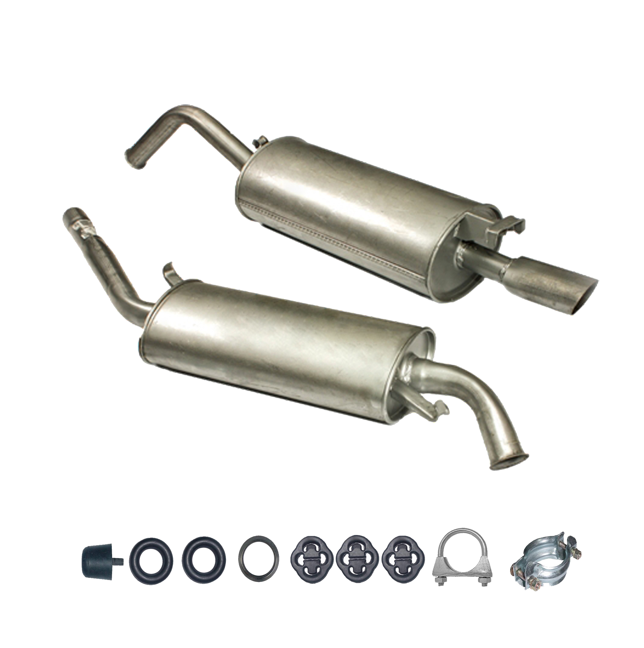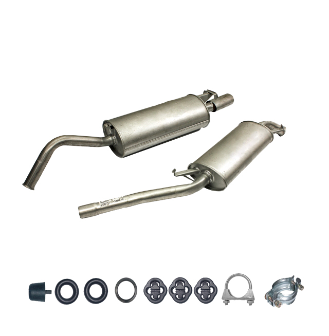 * Tłumiki posiadają system wygłuszający na bazie włókna szklanego dzięki temu nie zmienia się głośność układu wydechowego. * Produkt nie wymaga spawania !