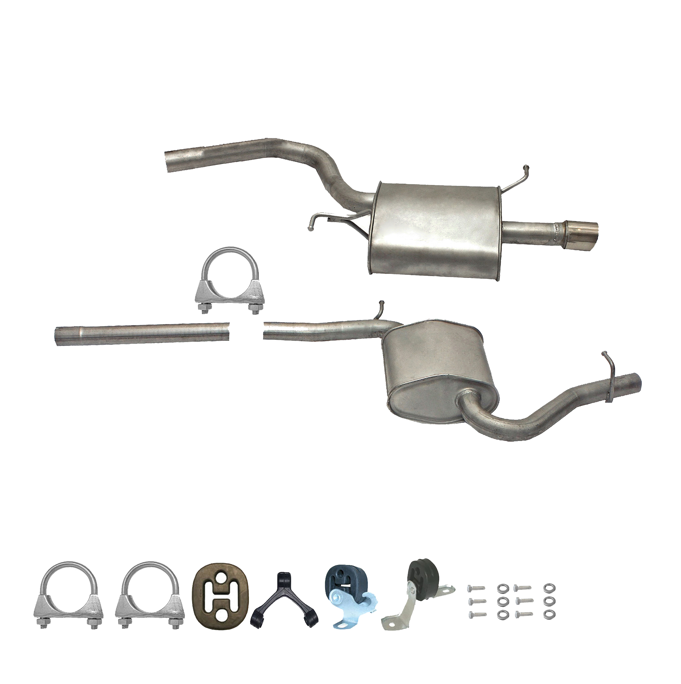 * Tłumiki posiadają system wygłuszający na bazie włókna szklanego dzięki temu nie zmienia się głośność układu wydechowego. * Produkt nie wymaga spawania !
