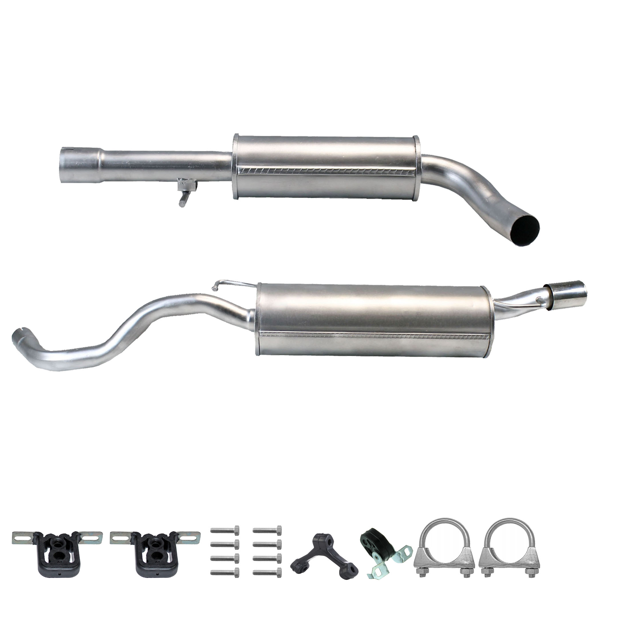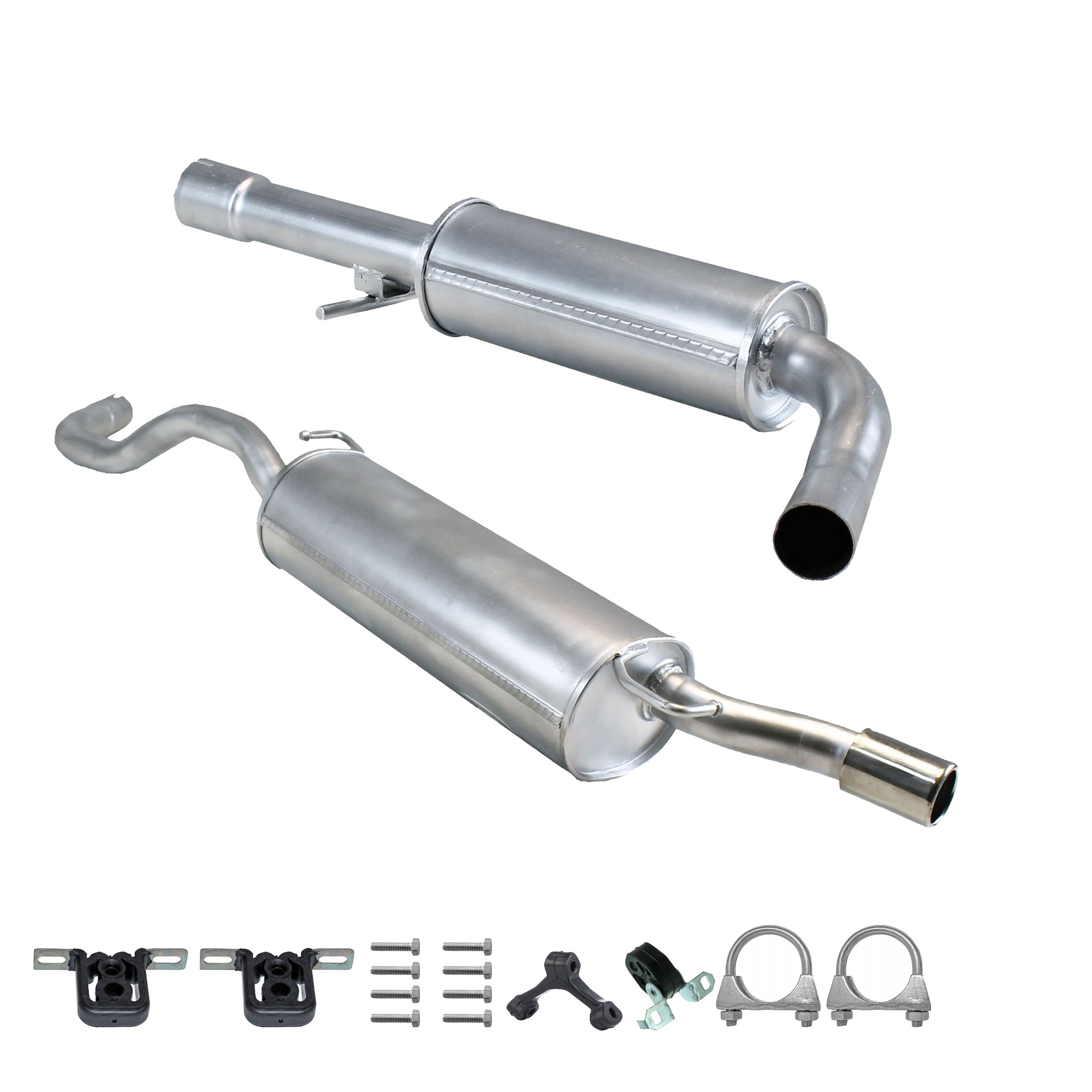 * Tłumiki posiadają system wygłuszający na bazie włókna szklanego dzięki temu nie zmienia się głośność układu wydechowego. * Produkt nie wymaga spawania !
