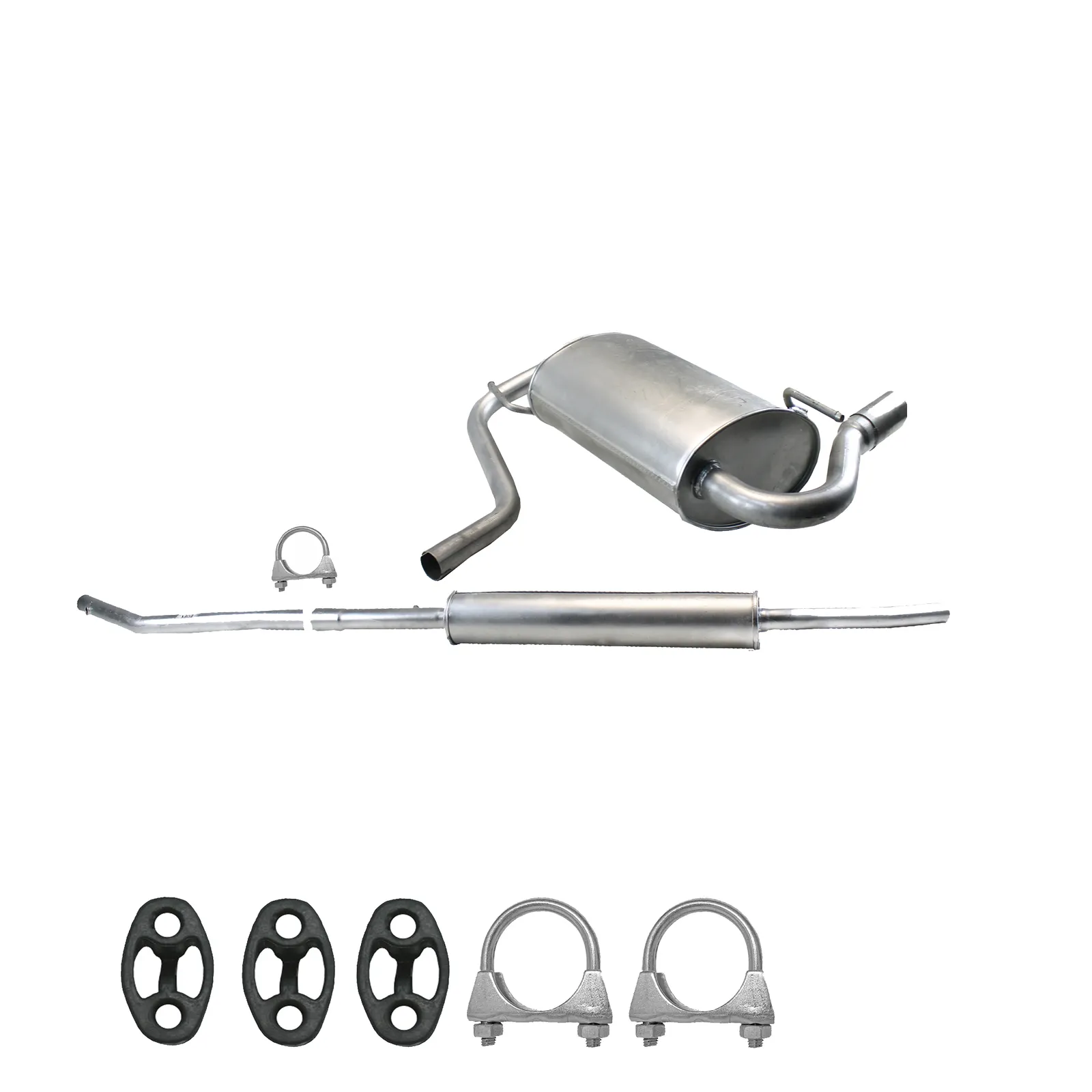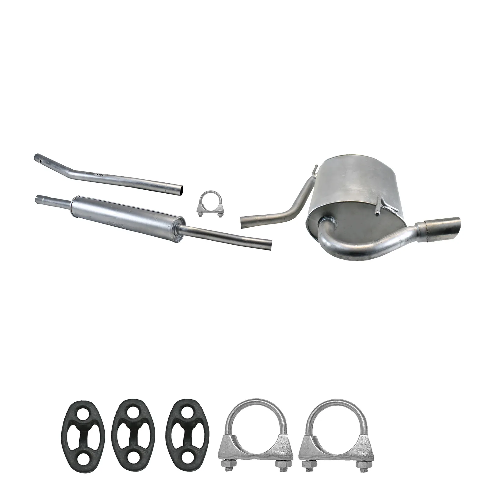 * Tłumiki posiadają system wygłuszający na bazie włókna szklanego dzięki temu nie zmienia się głośność układu wydechowego. * Produkt nie wymaga spawania !