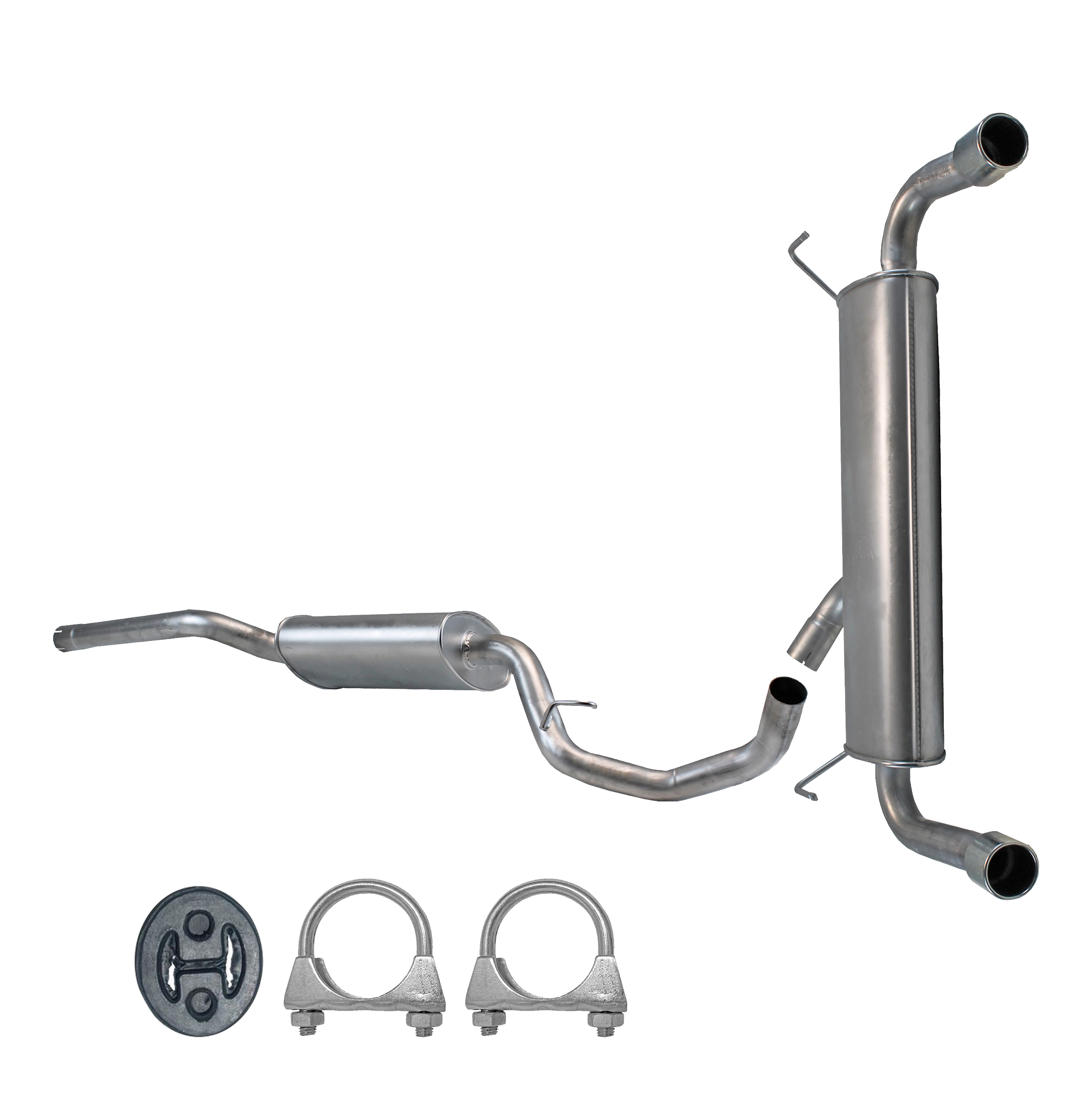 * Tłumiki posiadają system wygłuszający na bazie włókna szklanego dzięki temu nie zmienia się głośność układu wydechowego. * Produkt nie wymaga spawania !
