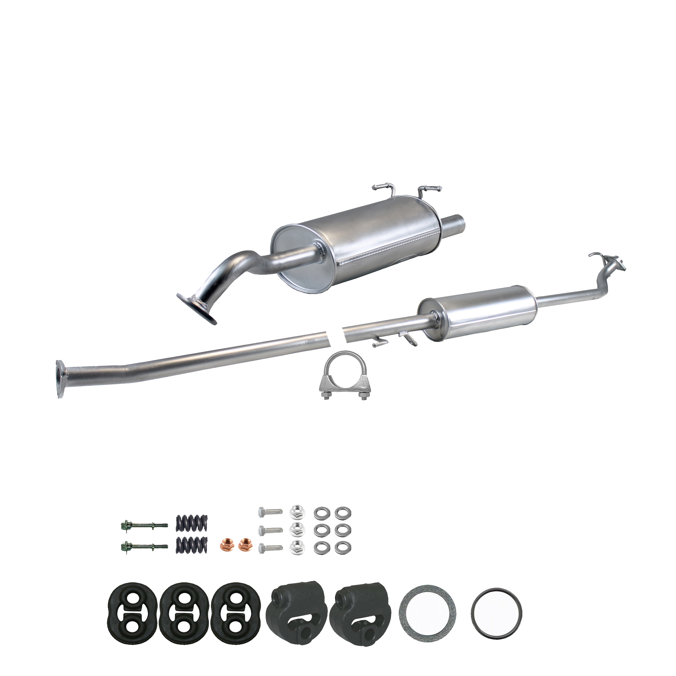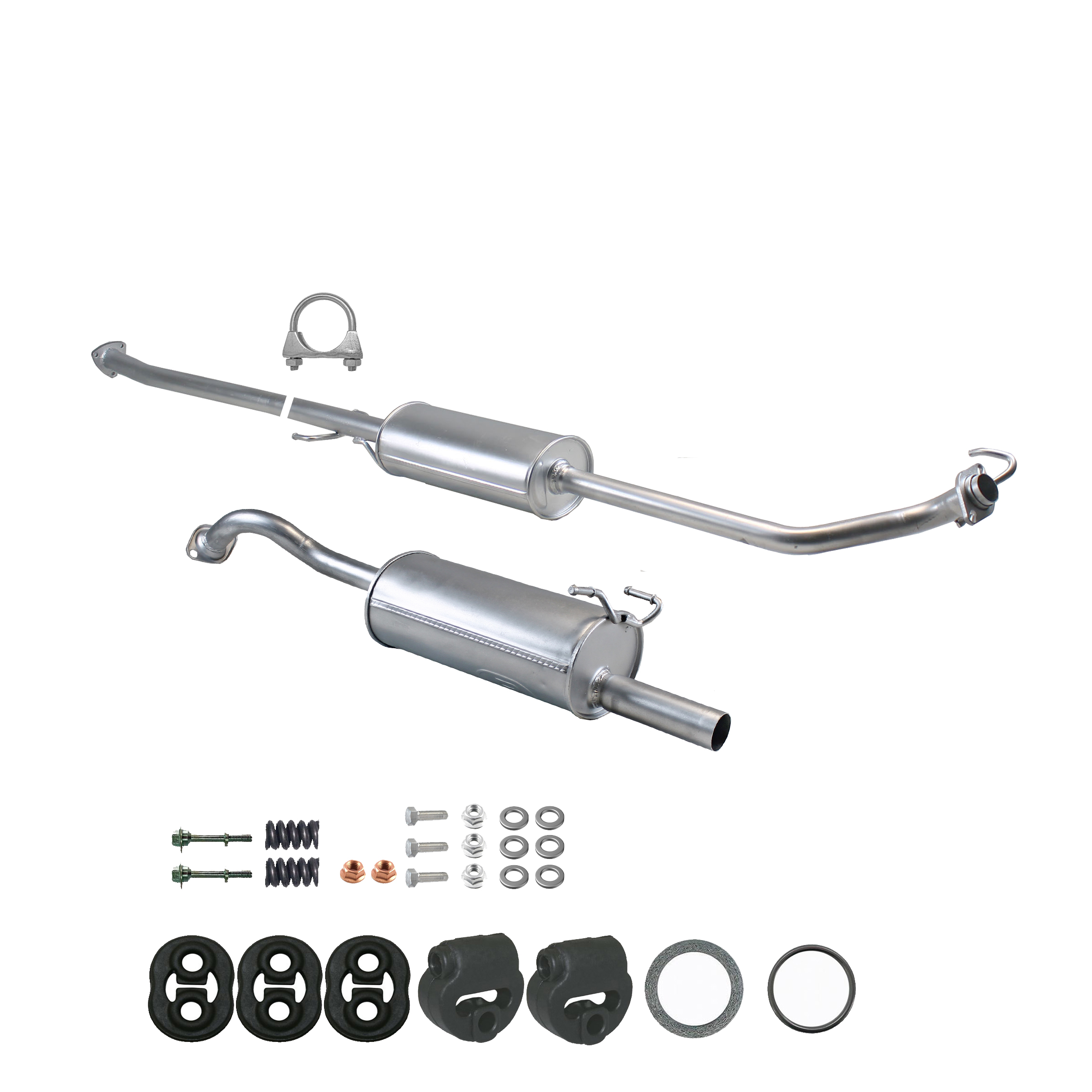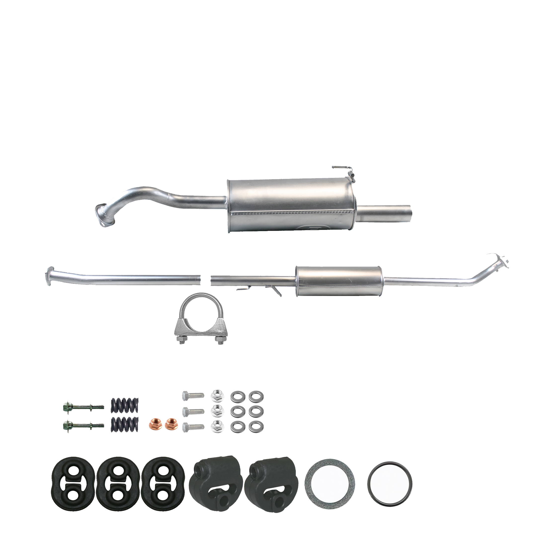 * Tłumiki posiadają system wygłuszający na bazie włókna szklanego dzięki temu nie zmienia się głośność układu wydechowego. * Produkt nie wymaga spawania !