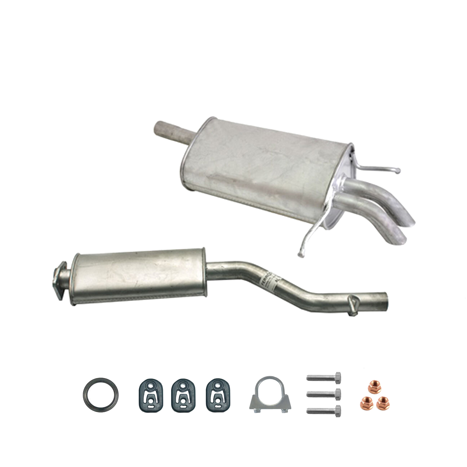 * Tłumiki posiadają system wygłuszający na bazie włókna szklanego dzięki temu nie zmienia się głośność układu wydechowego. * Produkt nie wymaga spawania !