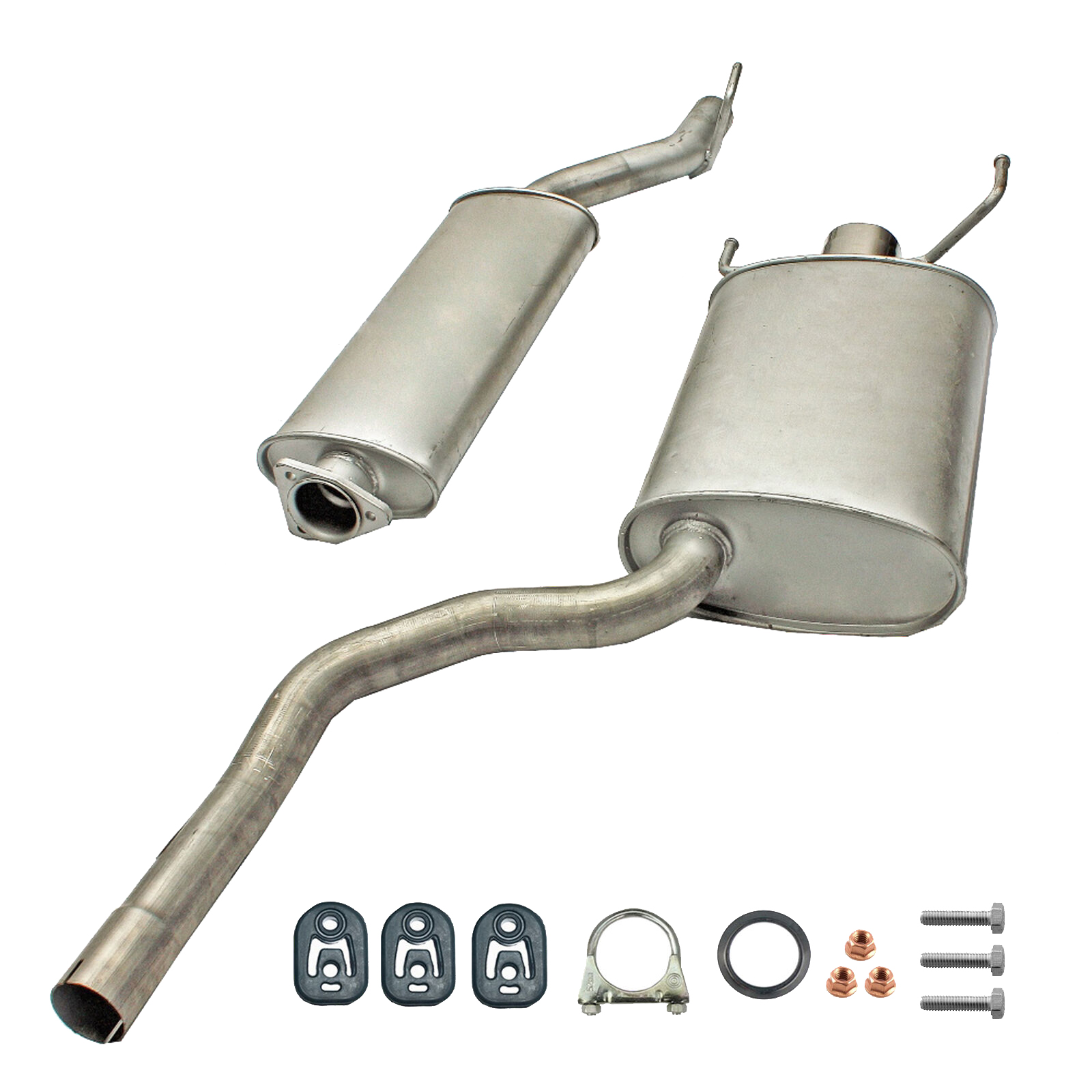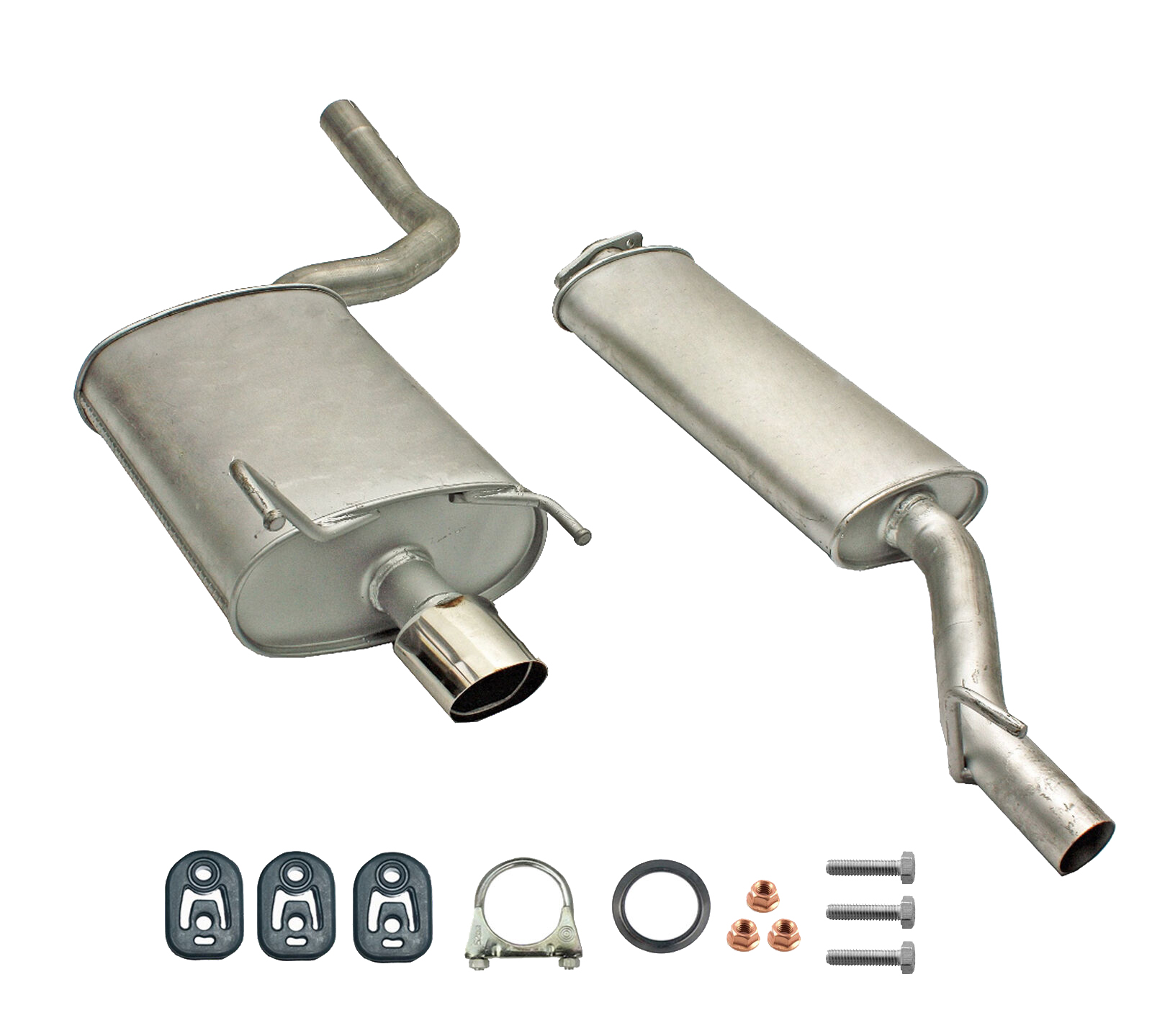 * Tłumiki posiadają system wygłuszający na bazie włókna szklanego dzięki temu nie zmienia się głośność układu wydechowego. * Produkt nie wymaga spawania !