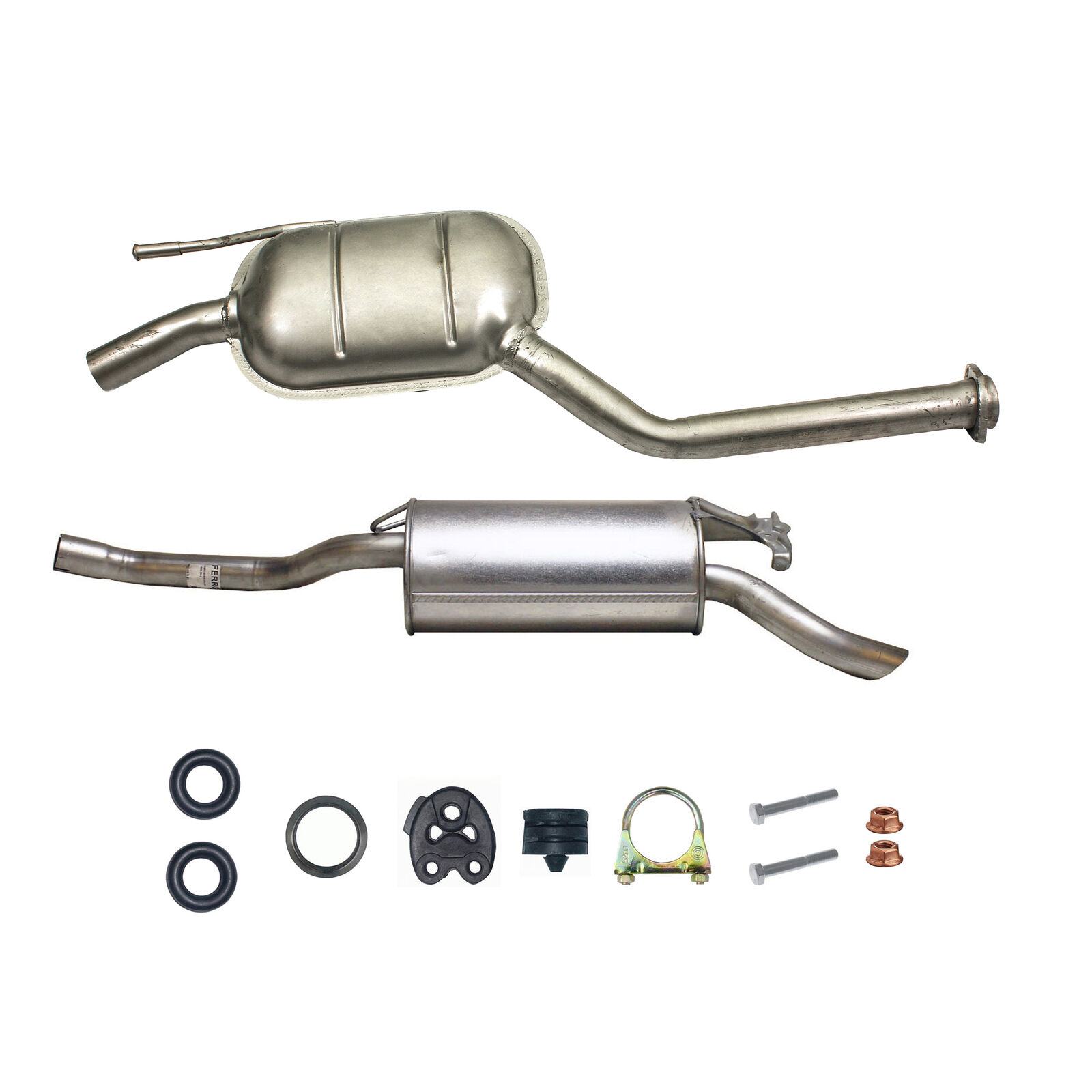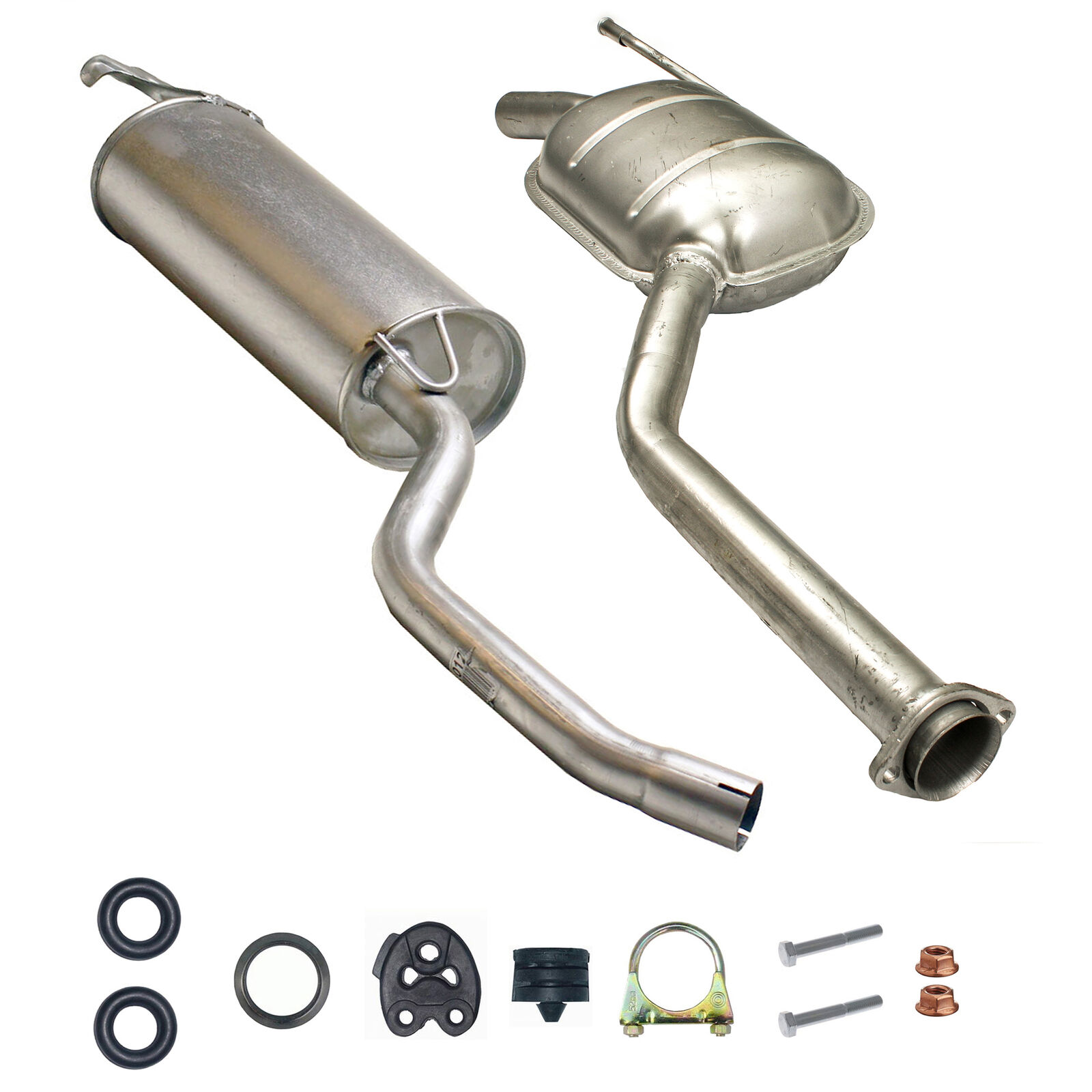 * Tłumiki posiadają system wygłuszający na bazie włókna szklanego dzięki temu nie zmienia się głośność układu wydechowego. * Produkt nie wymaga spawania !