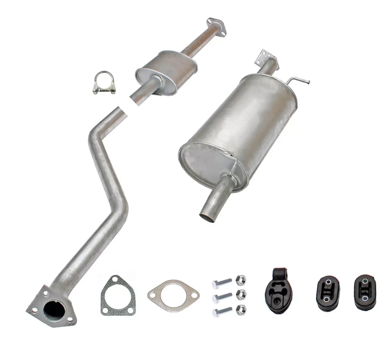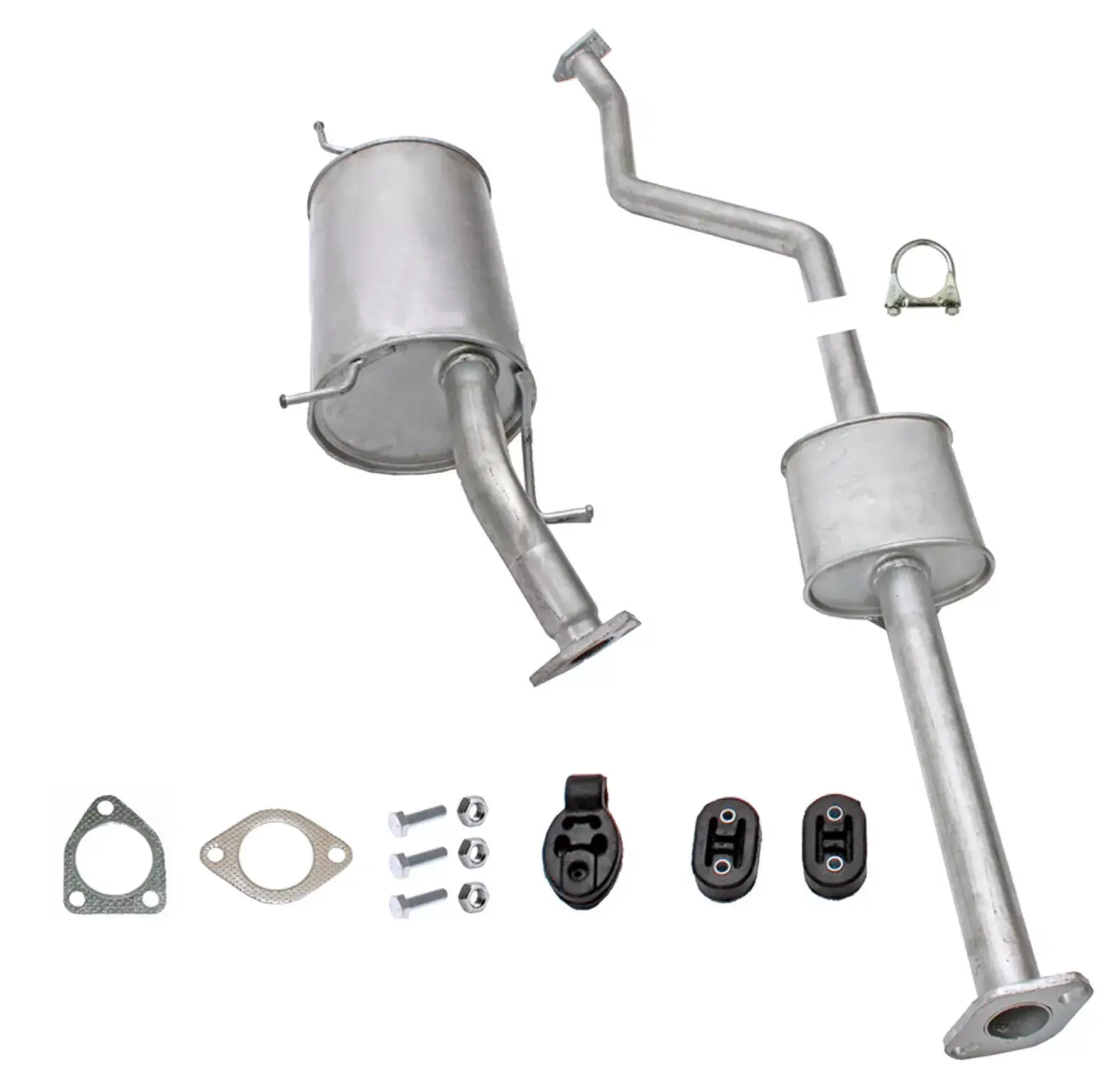 * Tłumiki posiadają system wygłuszający na bazie włókna szklanego dzięki temu nie zmienia się głośność układu wydechowego. * Produkt nie wymaga spawania !