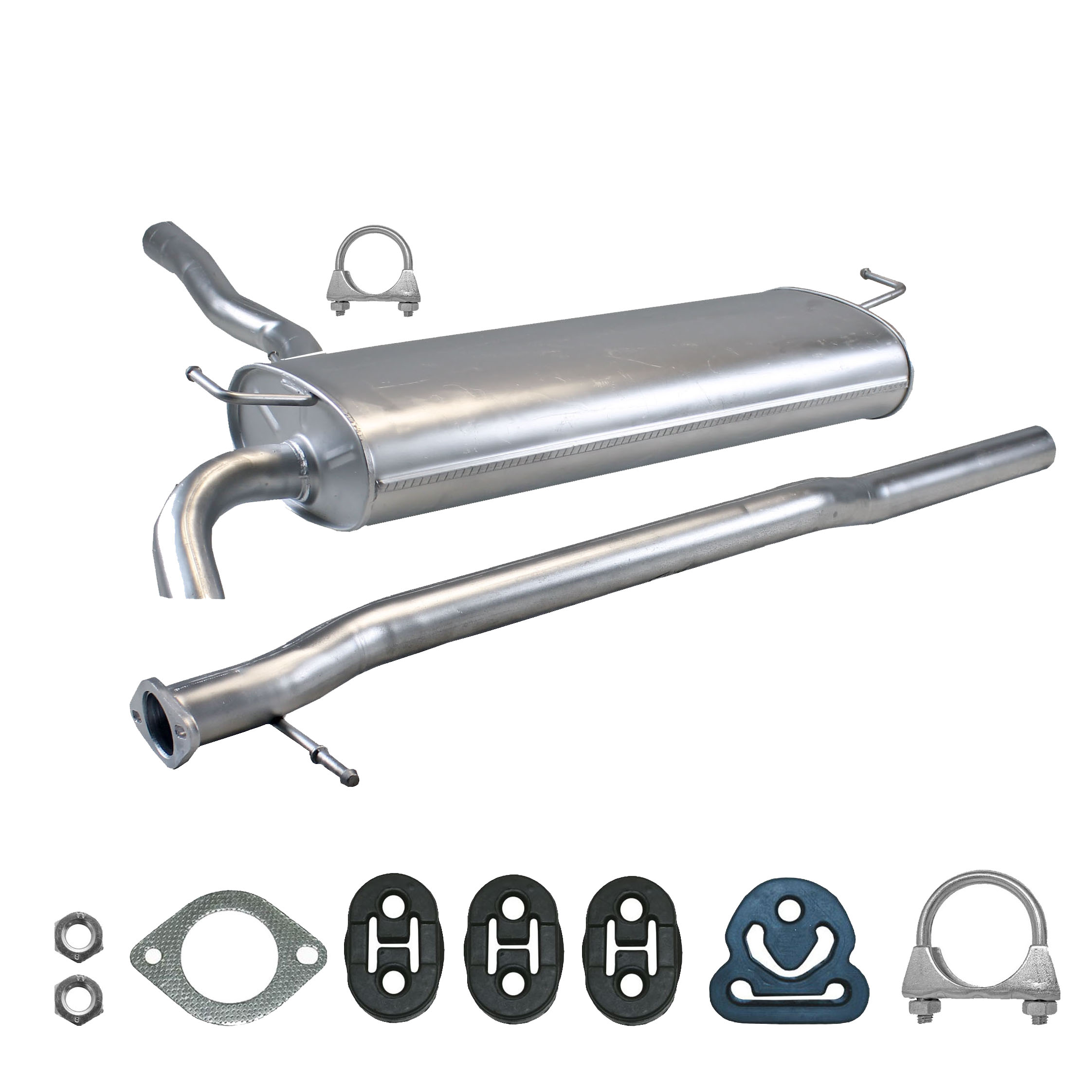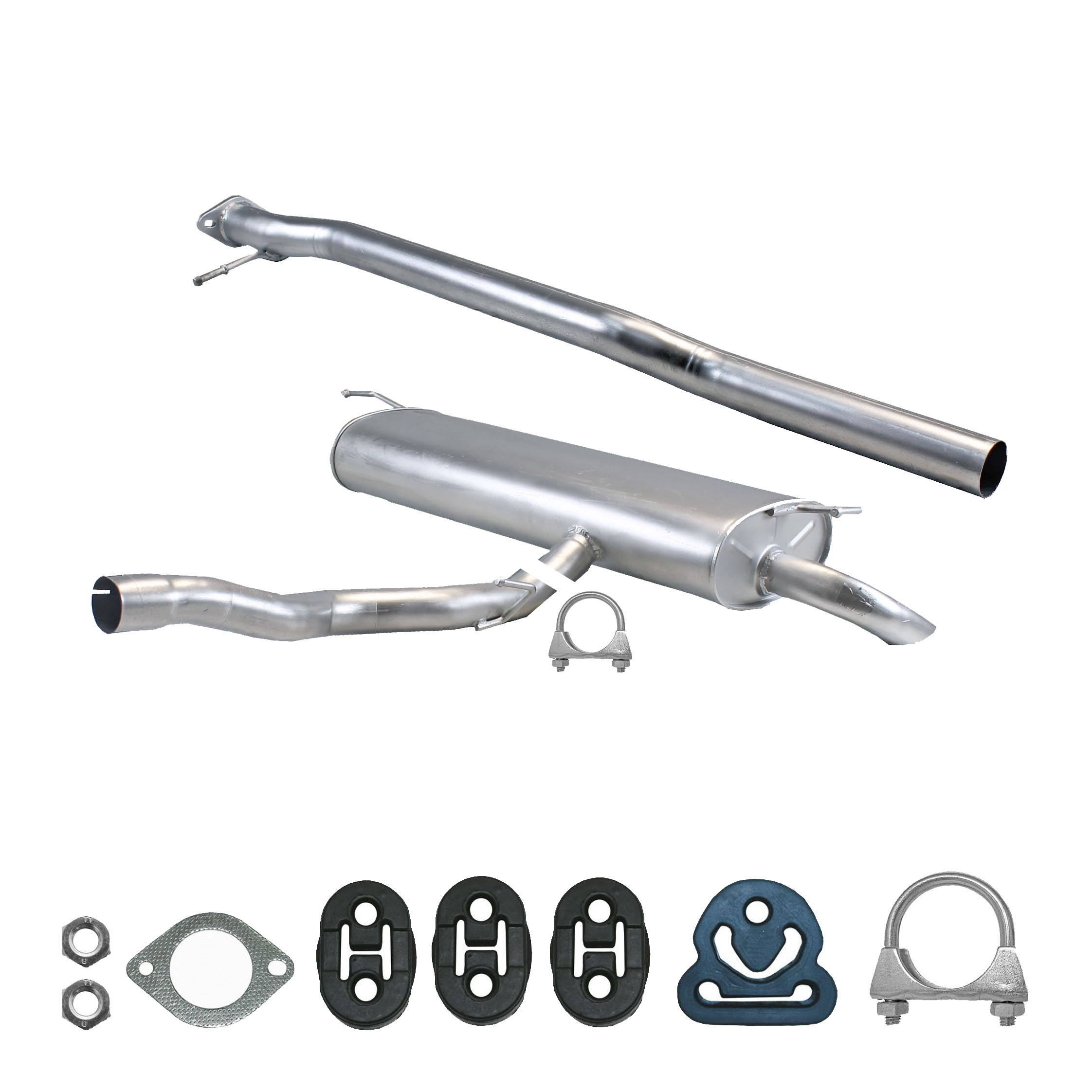 * Tłumiki posiadają system wygłuszający na bazie włókna szklanego dzięki temu nie zmienia się głośność układu wydechowego. * Produkt nie wymaga spawania !