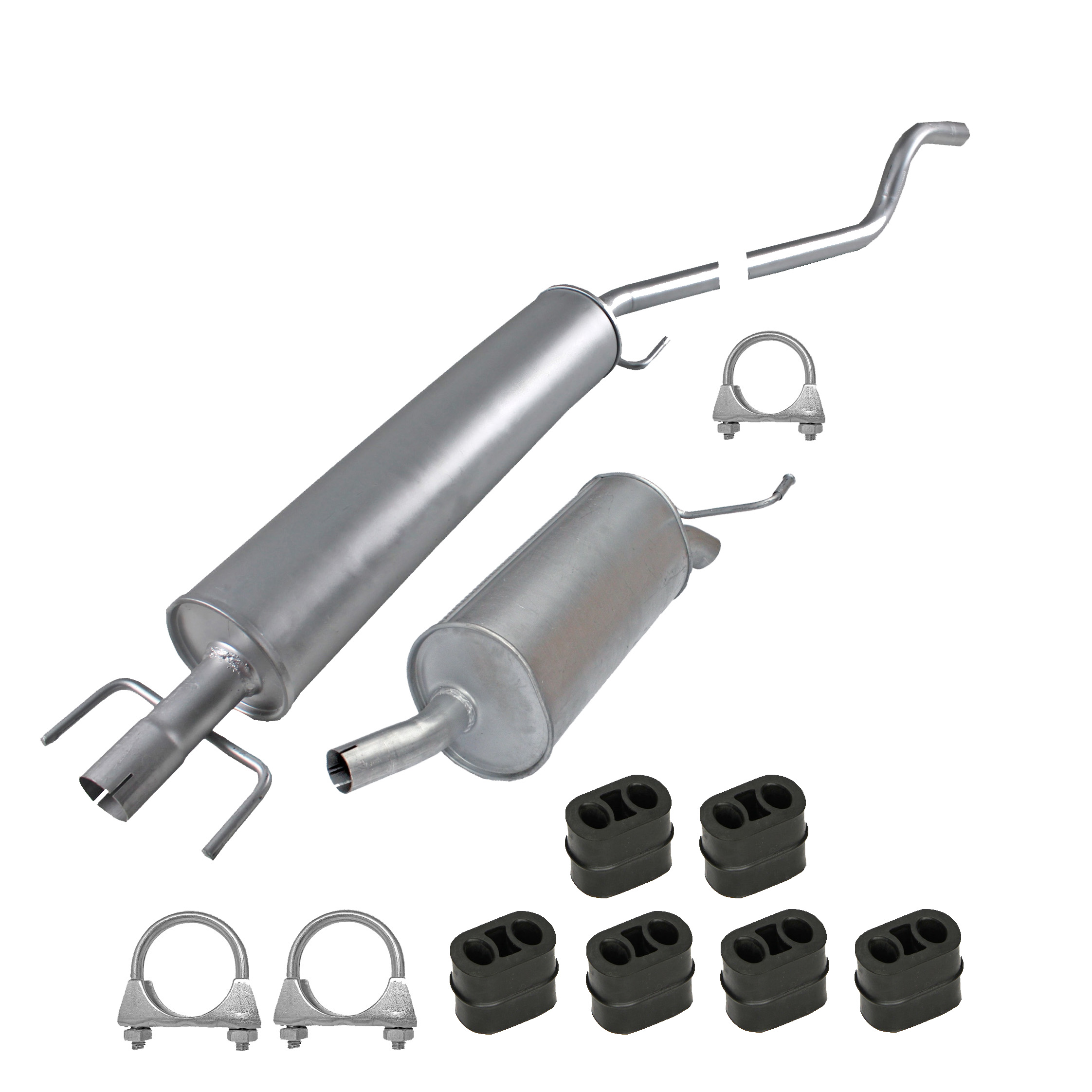 * Tłumiki posiadają system wygłuszający na bazie włókna szklanego dzięki temu nie zmienia się głośność układu wydechowego. * Produkt nie wymaga spawania !
