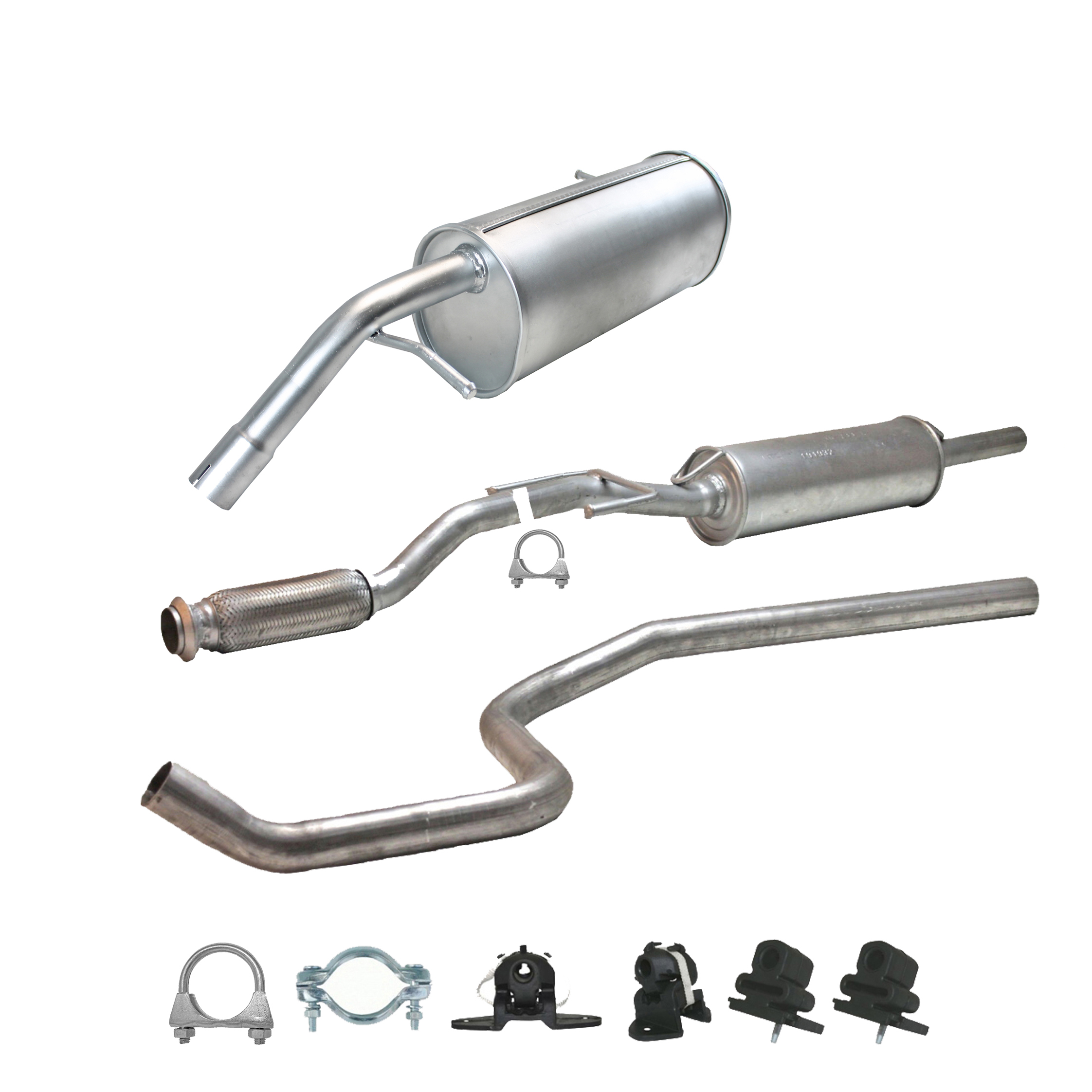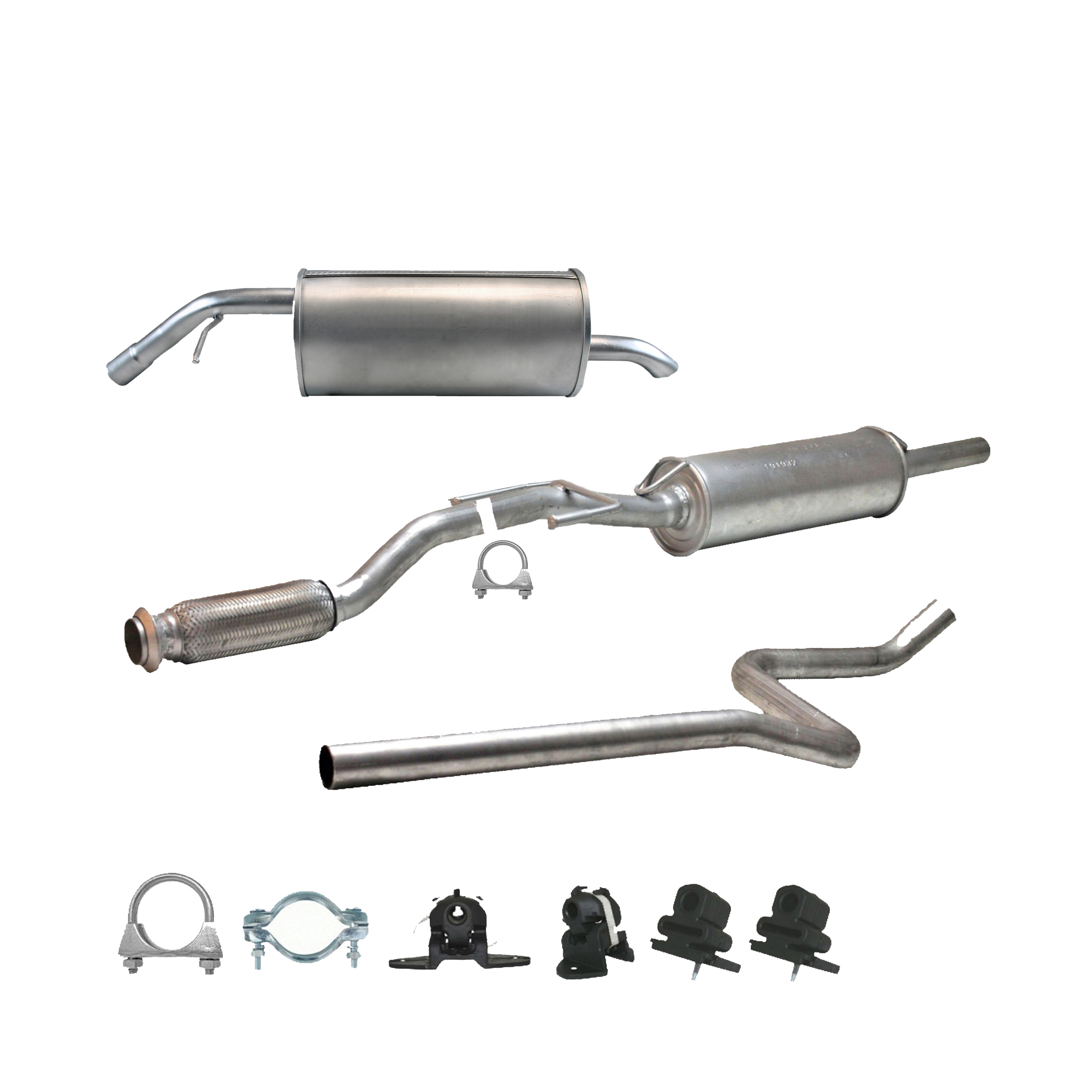 * Tłumiki posiadają system wygłuszający na bazie włókna szklanego dzięki temu nie zmienia się głośność układu wydechowego. * Produkt nie wymaga spawania !