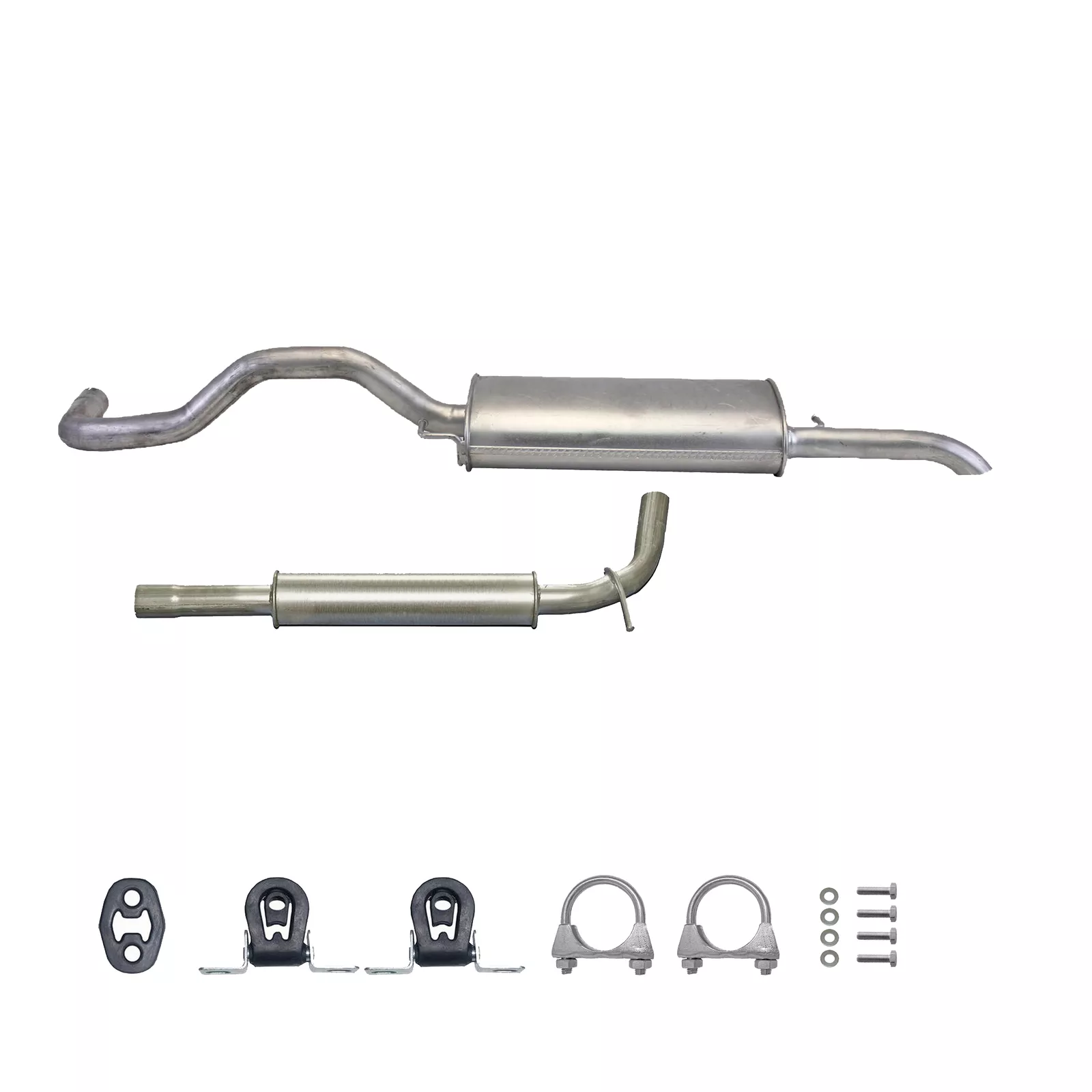 * Tłumiki posiadają system wygłuszający na bazie włókna szklanego dzięki temu nie zmienia się głośność układu wydechowego. * Produkt nie wymaga spawania !