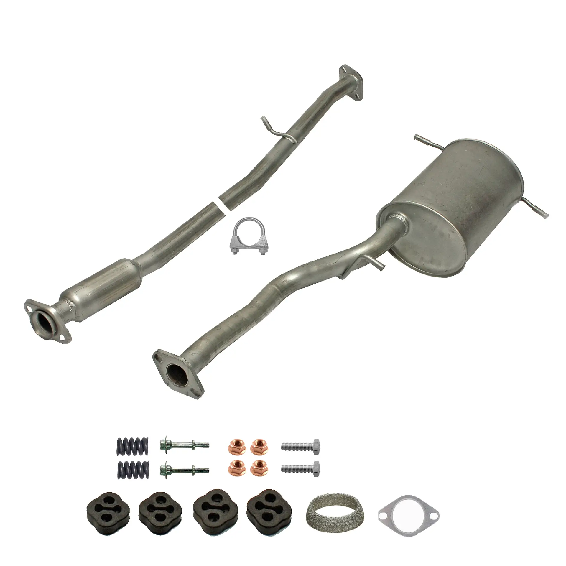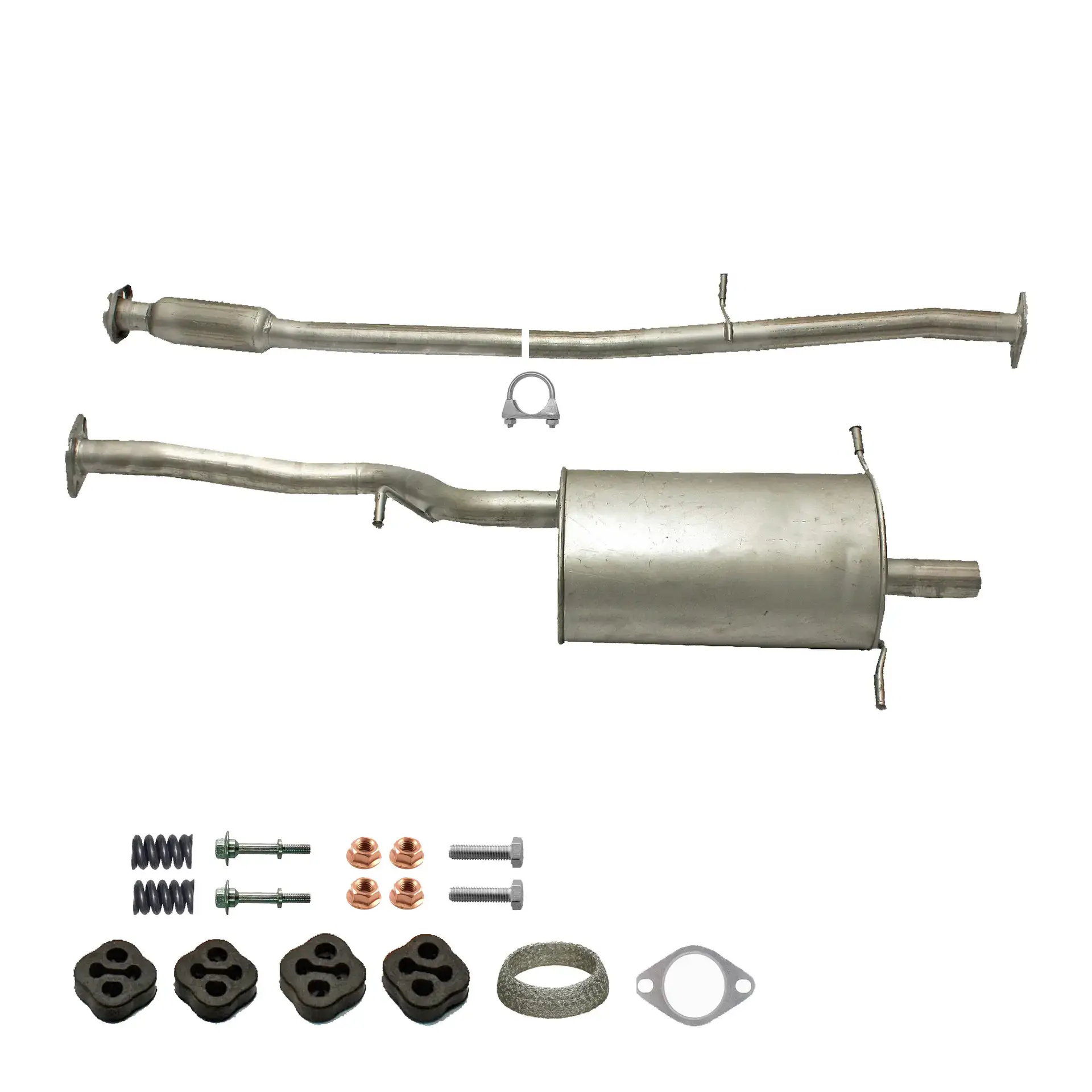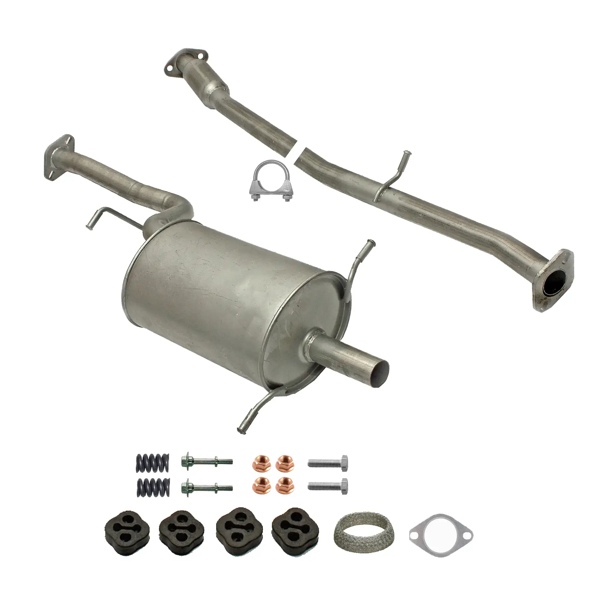 * Tłumiki posiadają system wygłuszający na bazie włókna szklanego dzięki temu nie zmienia się głośność układu wydechowego. * Produkt nie wymaga spawania !