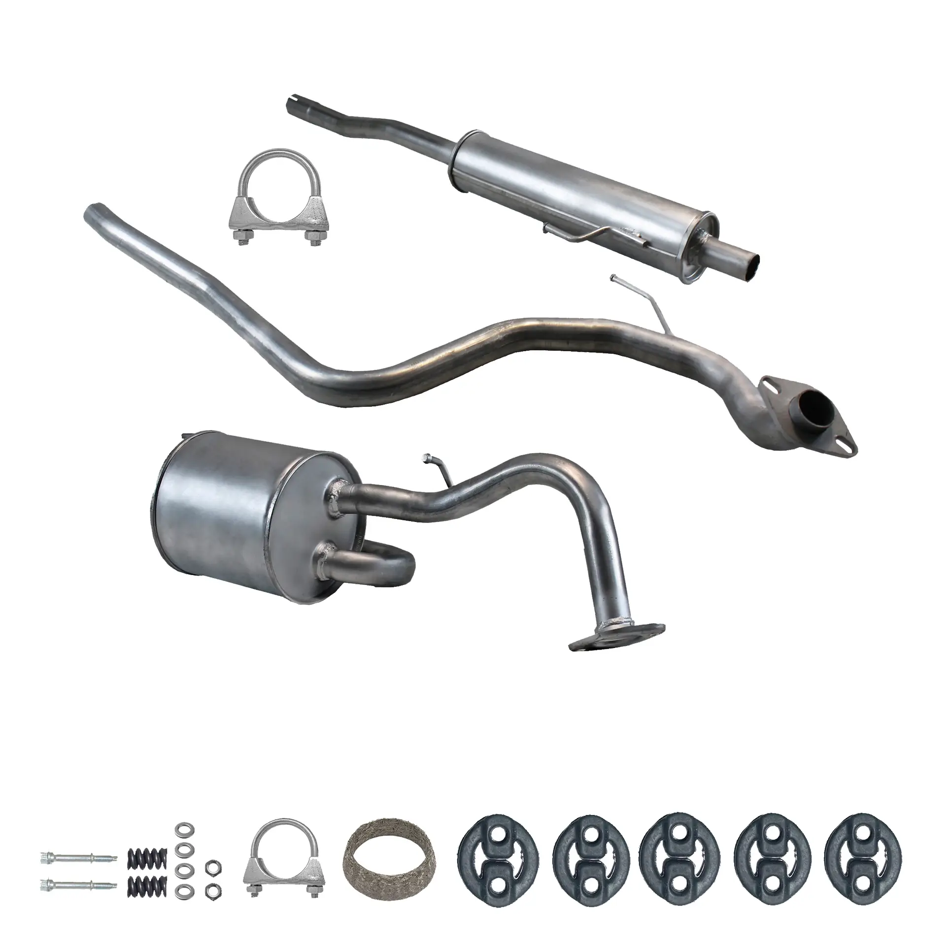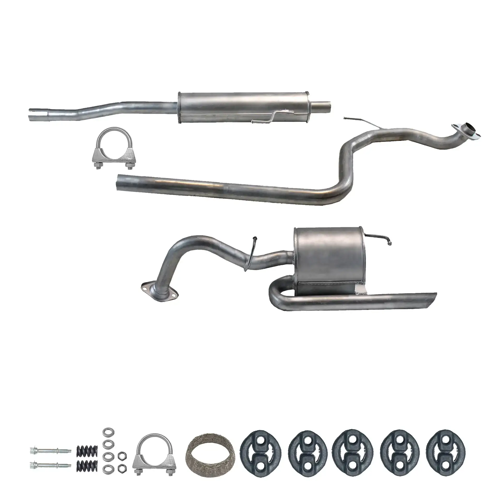 * Tłumiki posiadają system wygłuszający na bazie włókna szklanego dzięki temu nie zmienia się głośność układu wydechowego. * Produkt nie wymaga spawania !