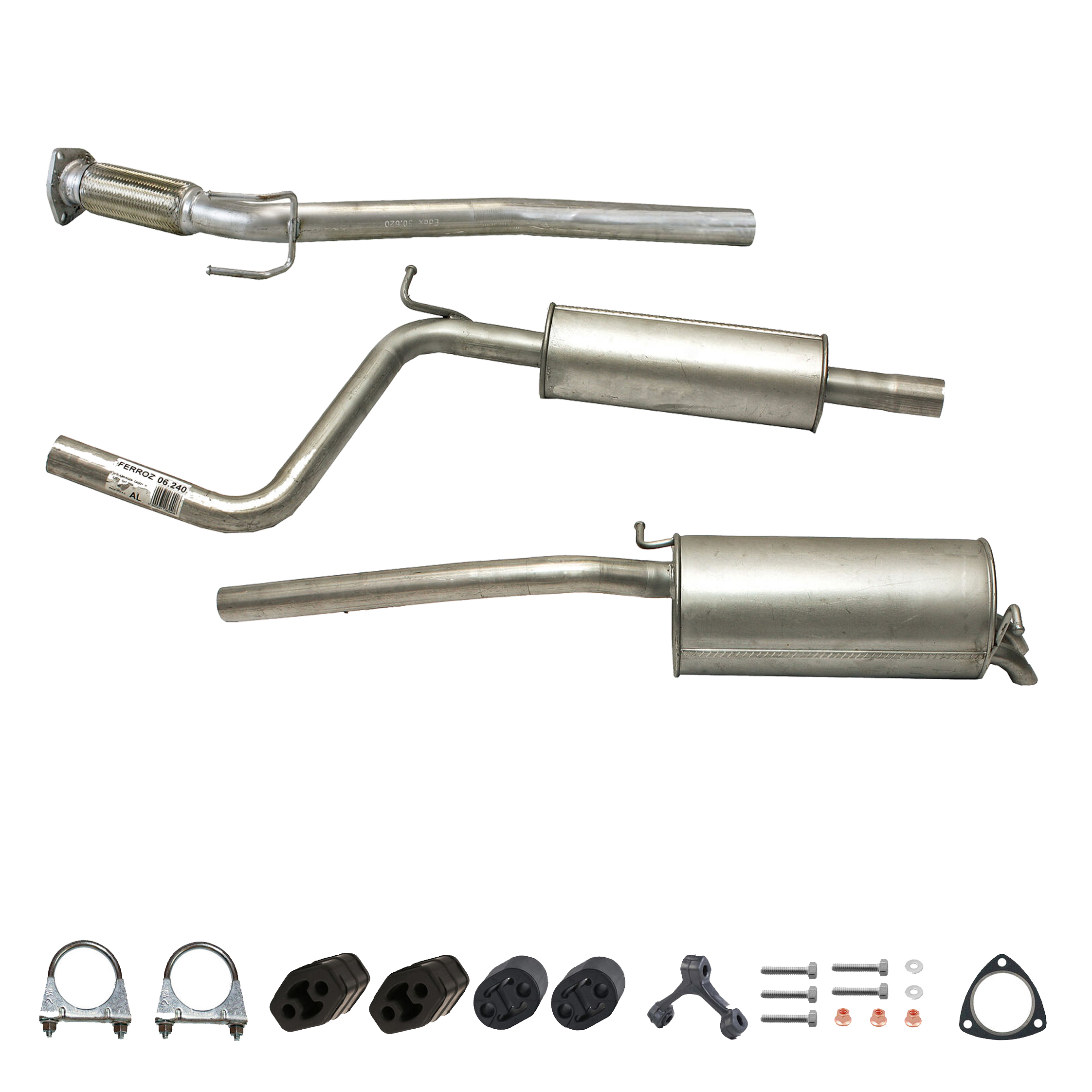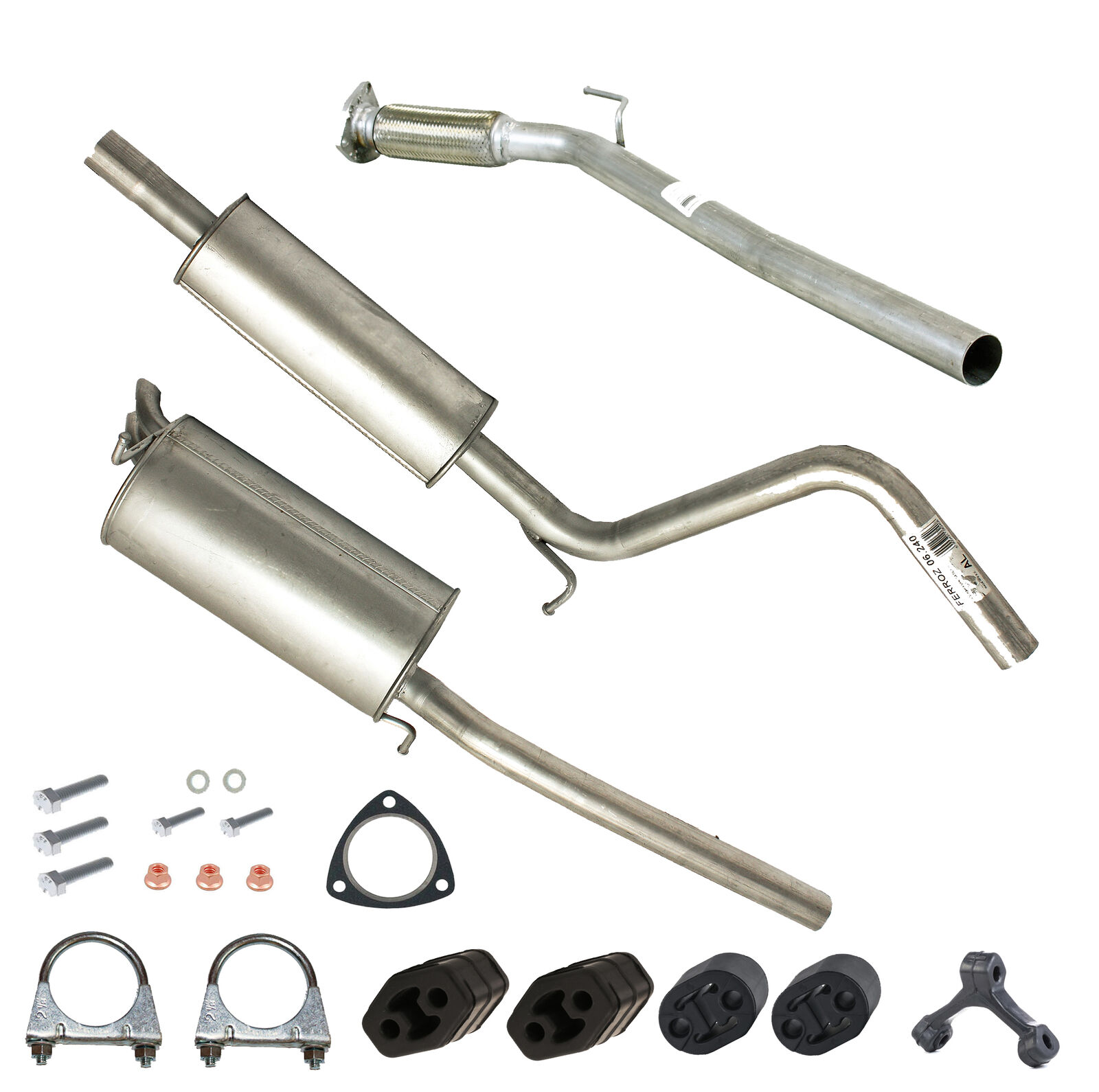 * Tłumiki posiadają system wygłuszający na bazie włókna szklanego dzięki temu nie zmienia się głośność układu wydechowego. * Produkt nie wymaga spawania !
