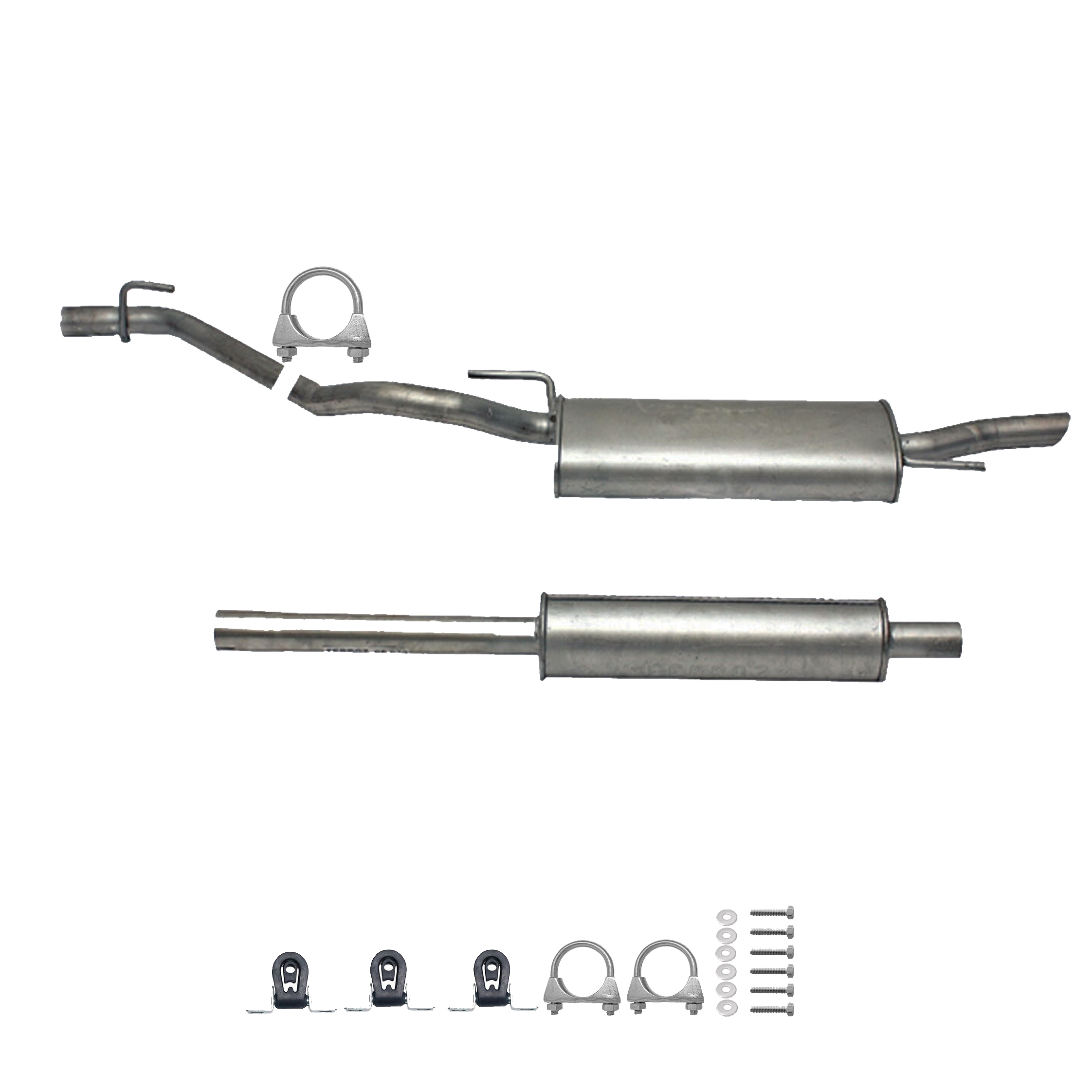 * Tłumiki posiadają system wygłuszający na bazie włókna szklanego dzięki temu nie zmienia się głośność układu wydechowego. * Produkt nie wymaga spawania !