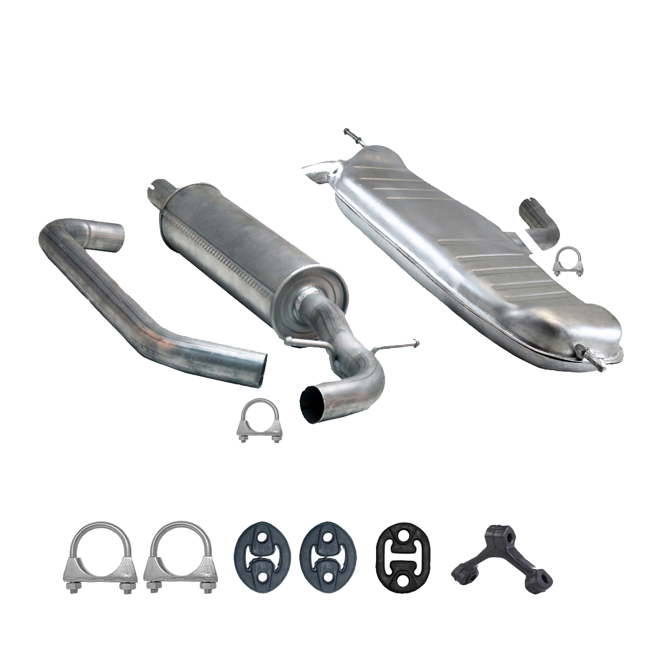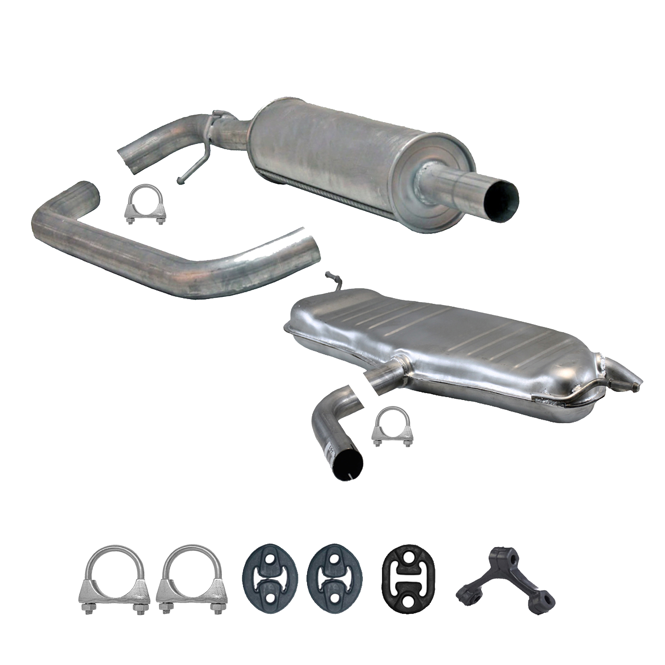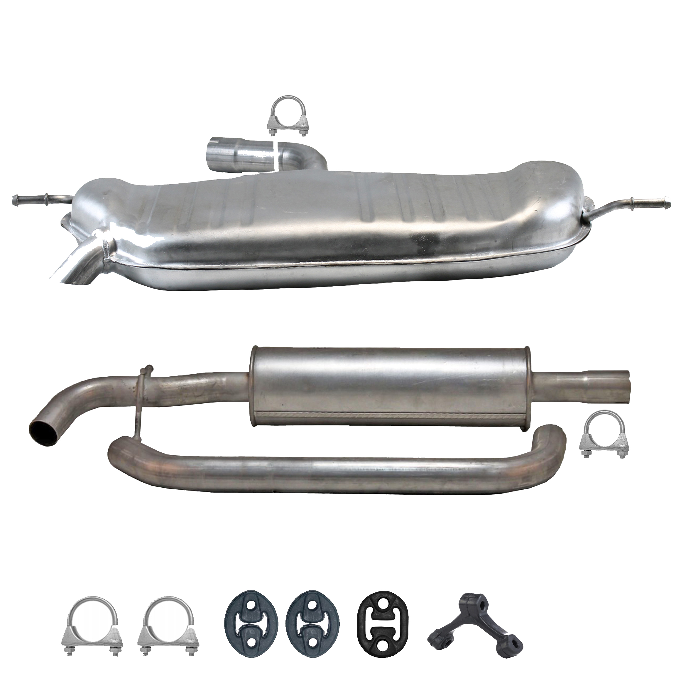 * Tłumiki posiadają system wygłuszający na bazie włókna szklanego dzięki temu nie zmienia się głośność układu wydechowego. * Produkt nie wymaga spawania !