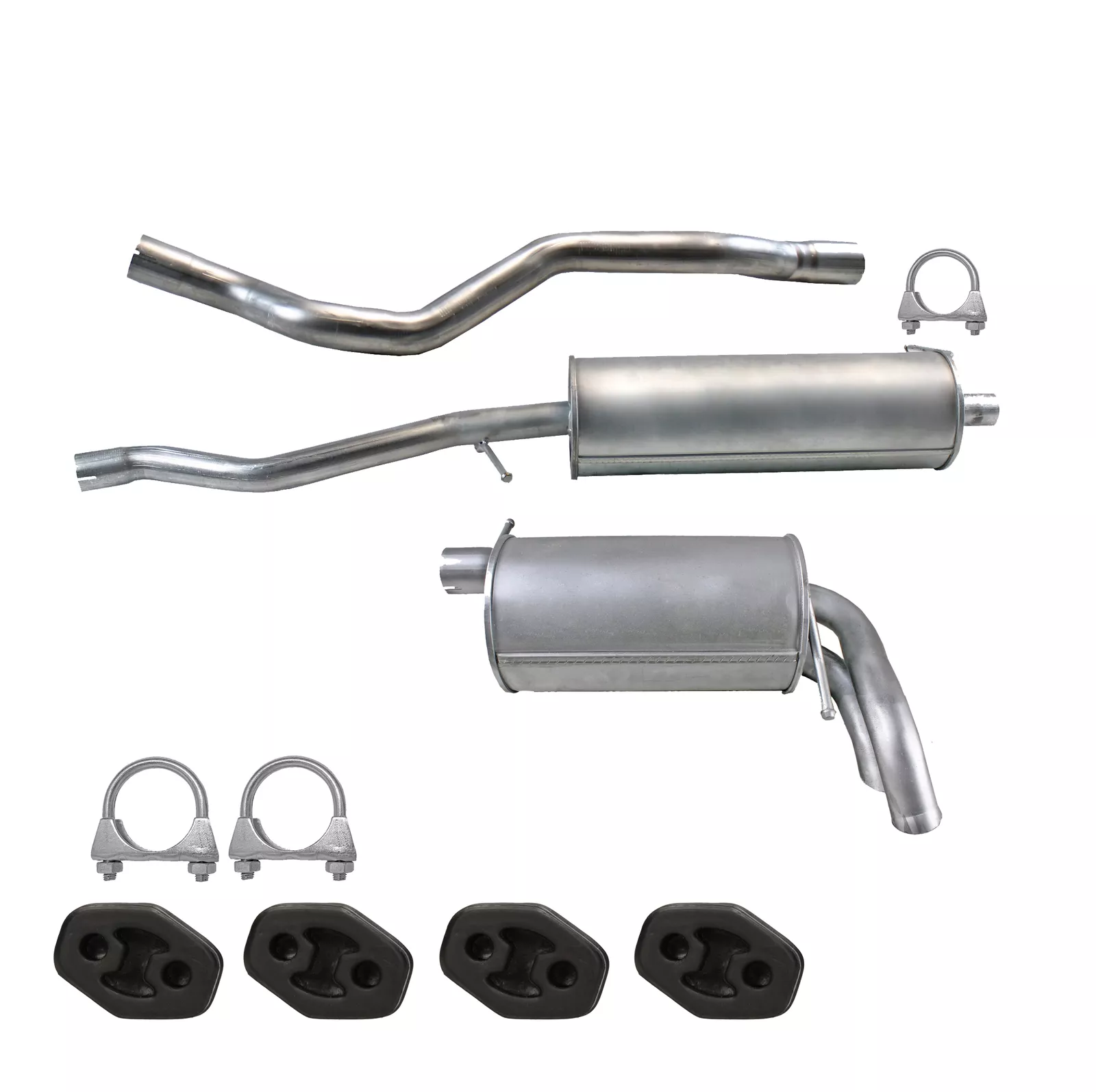 * Tłumiki posiadają system wygłuszający na bazie włókna szklanego dzięki temu nie zmienia się głośność układu wydechowego. * Produkt nie wymaga spawania !