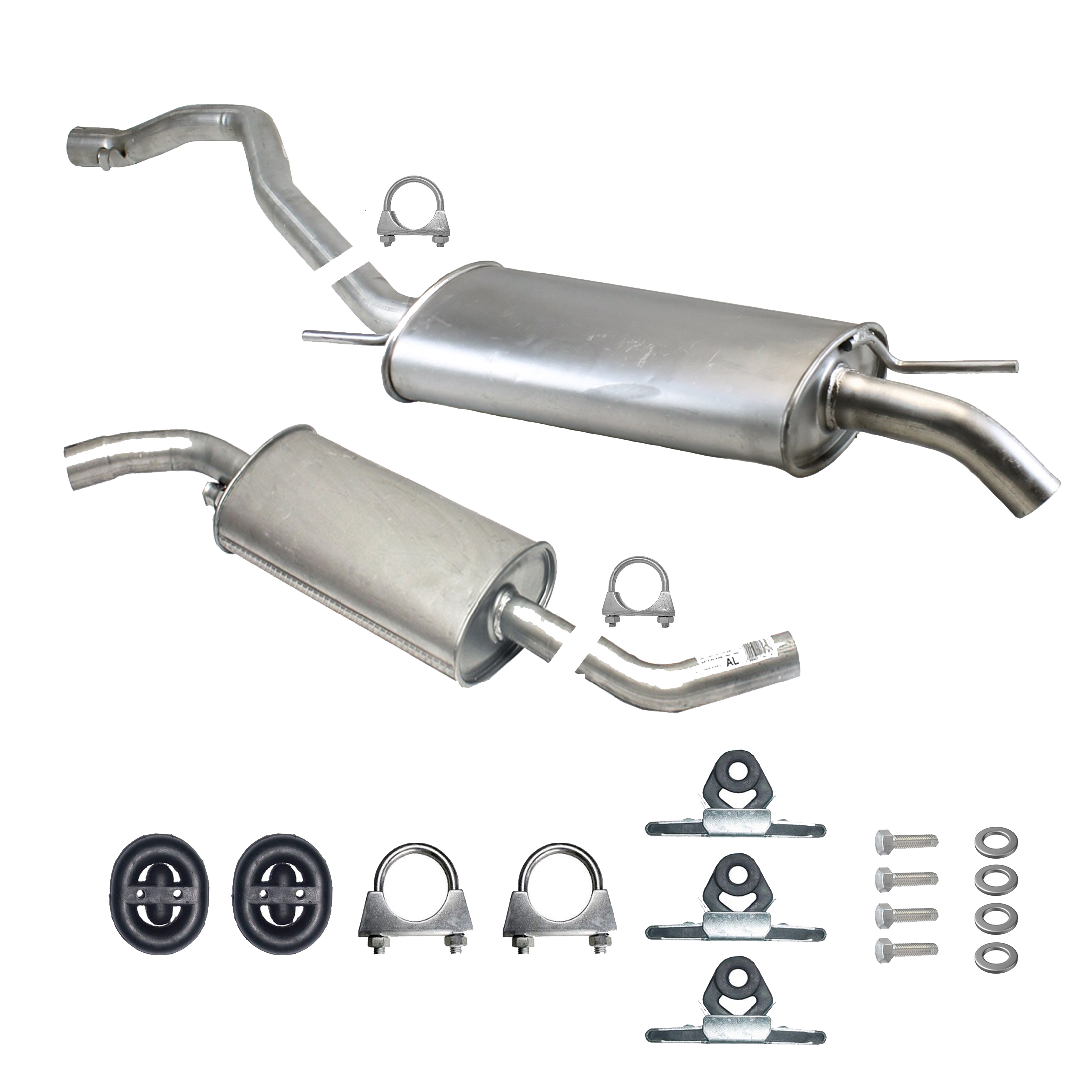 * Tłumiki posiadają system wygłuszający na bazie włókna szklanego dzięki temu nie zmienia się głośność układu wydechowego. * Produkt nie wymaga spawania !