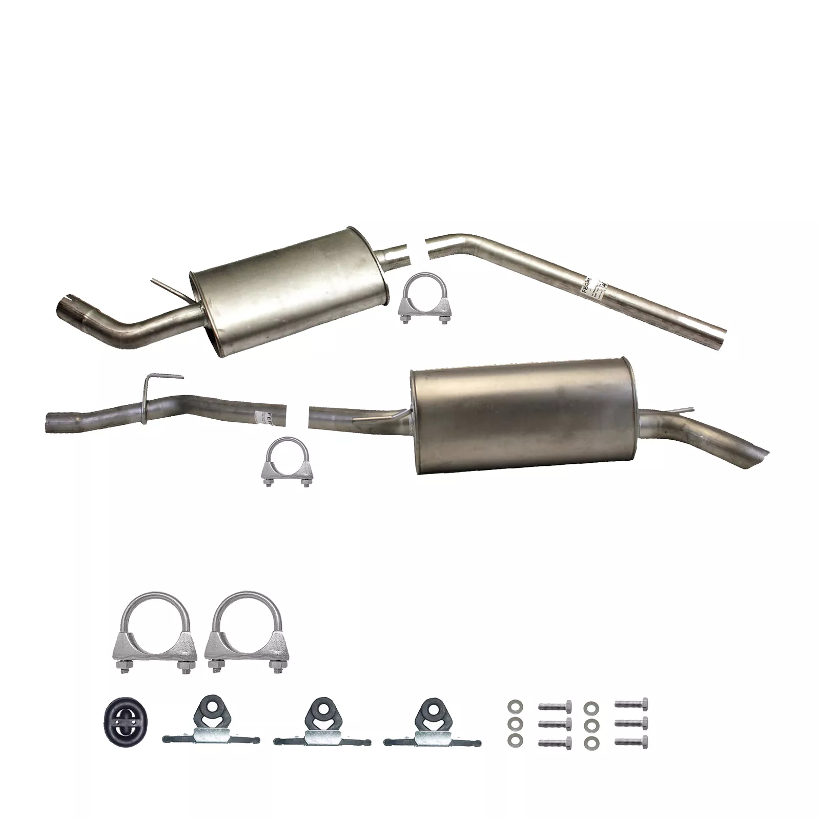 * Tłumiki posiadają system wygłuszający na bazie włókna szklanego dzięki temu nie zmienia się głośność układu wydechowego. * Produkt nie wymaga spawania !
