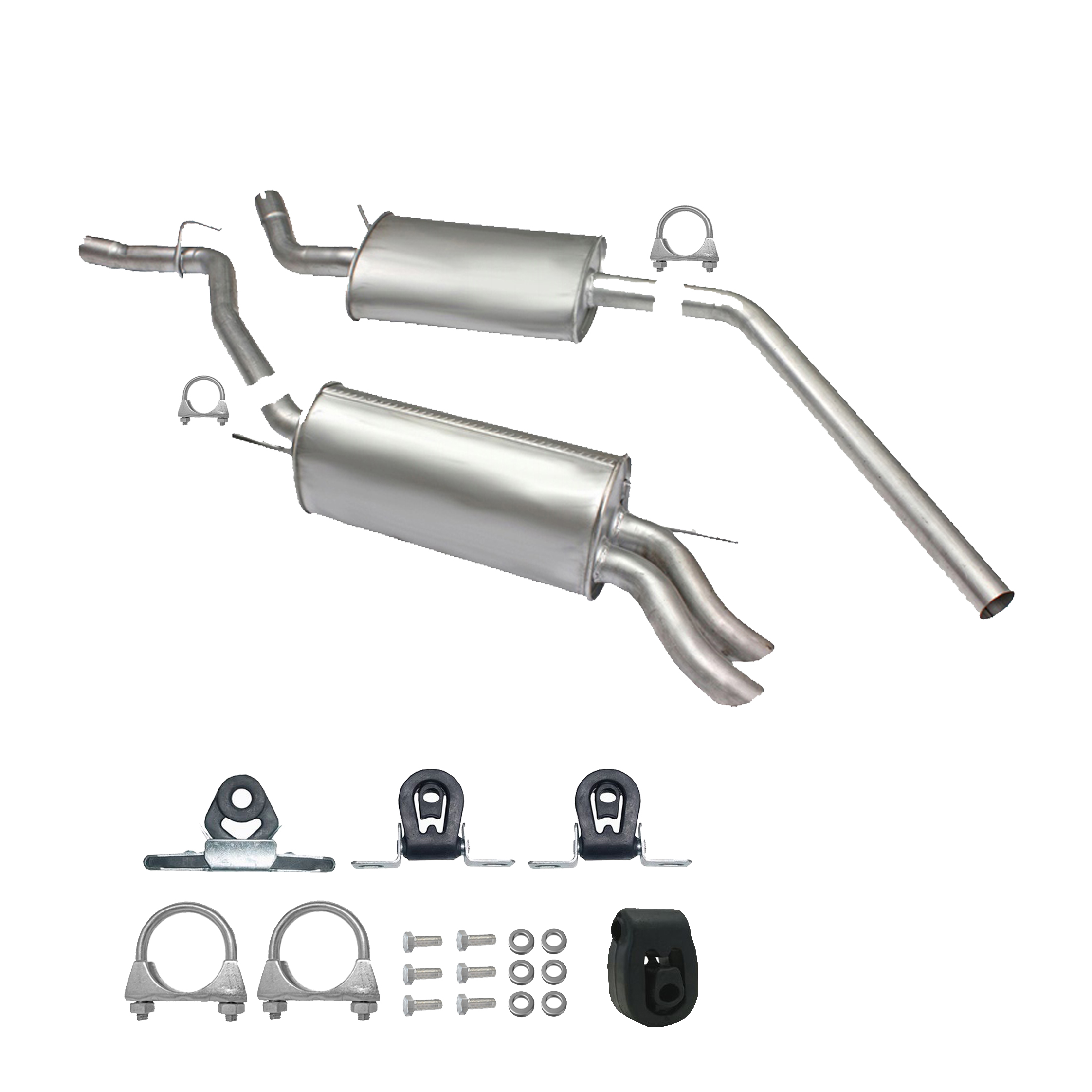 * Tłumiki posiadają system wygłuszający na bazie włókna szklanego dzięki temu nie zmienia się głośność układu wydechowego. * Produkt nie wymaga spawania !