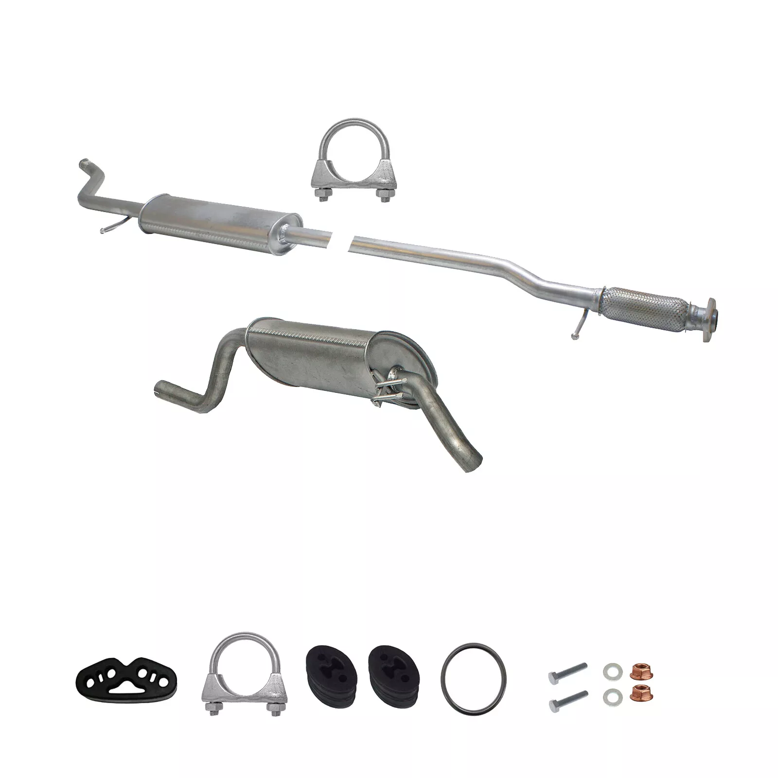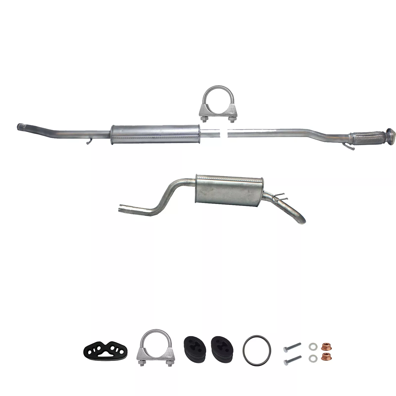 * Tłumiki posiadają system wygłuszający na bazie włókna szklanego dzięki temu nie zmienia się głośność układu wydechowego. * Produkt nie wymaga spawania !